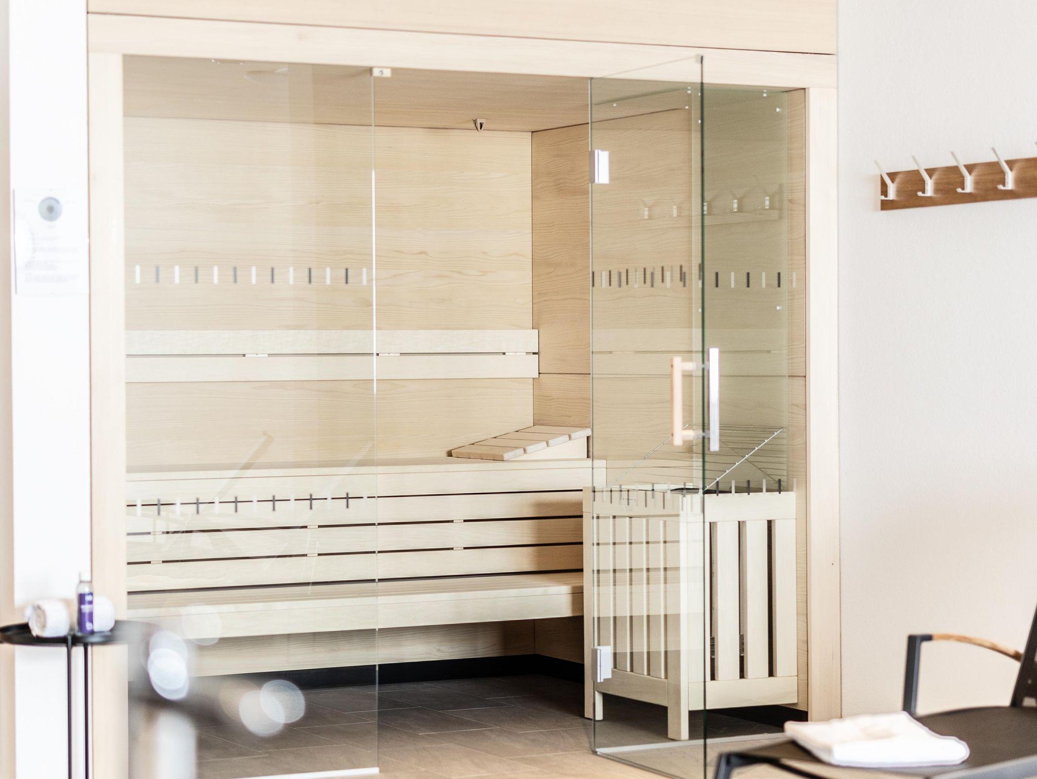 Freuen Sie sich nach dem Wandern oder Skifahren auf eine gemütliche Sauna mit Wellnessliegen. Hier können Sie so richtig entspannen. Die gerne noch etwas „Aktion“ haben steht im Aufenthaltsraum ein Kicker, Tischtennistisch und eine Dartscheibe bereit.