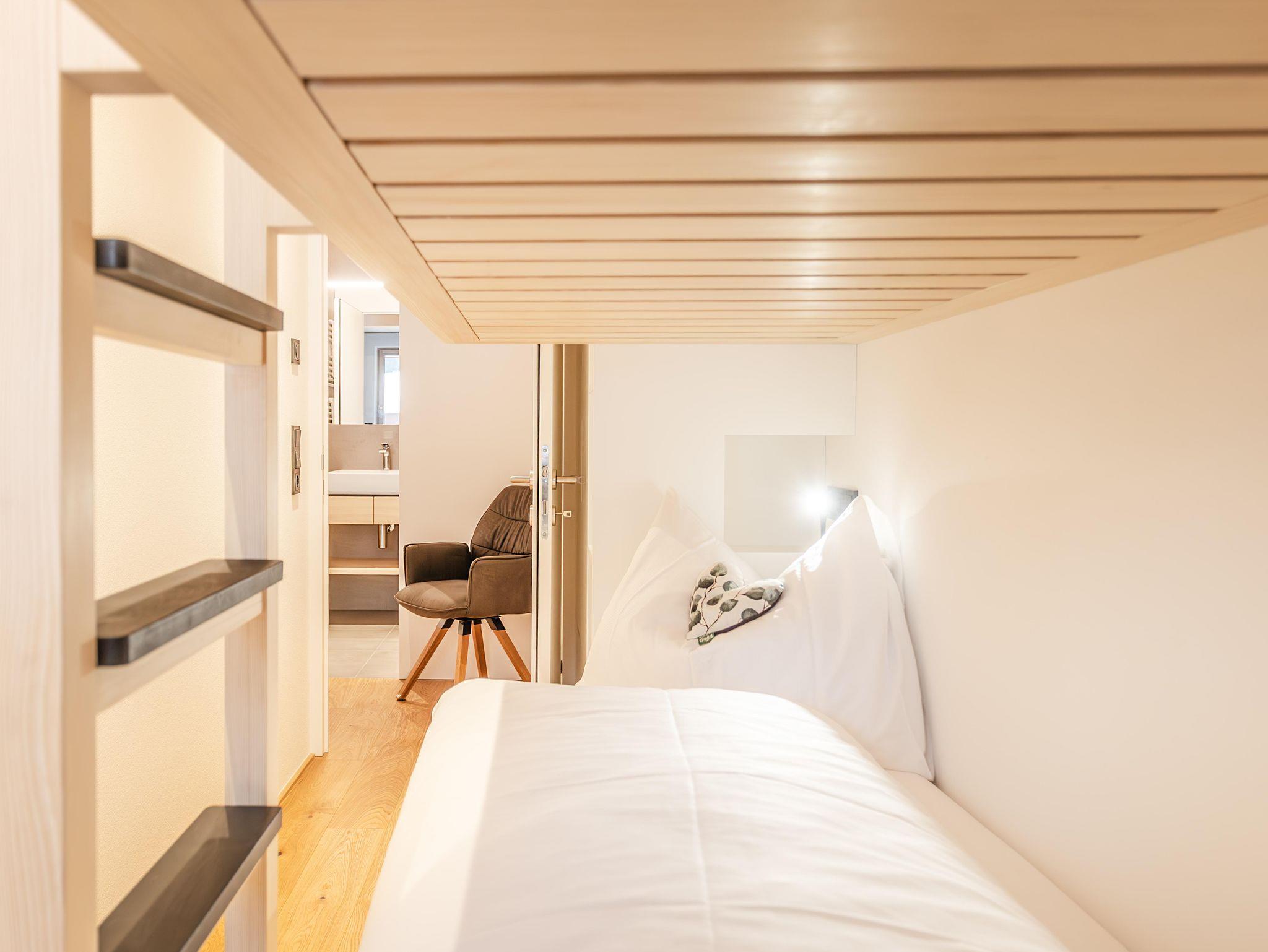 Das Appartement hat 2 Schlafzimmer. Eines mit 1 Doppelbett und ein Schlafzimmer mit 1 Stockbett.