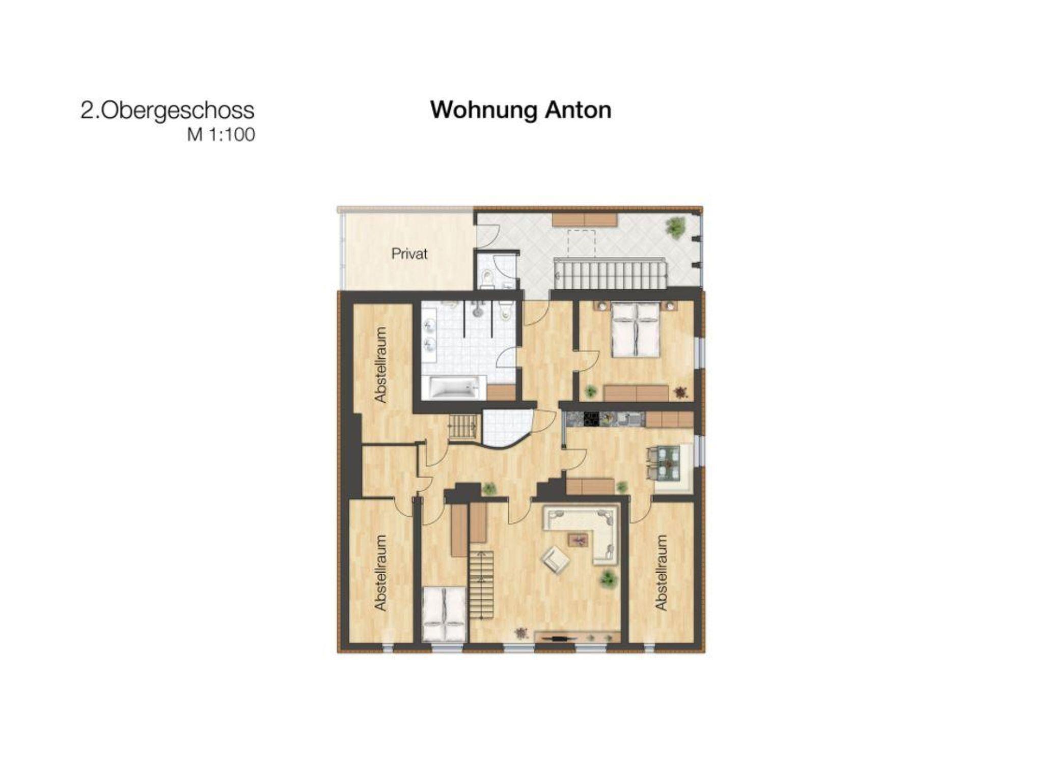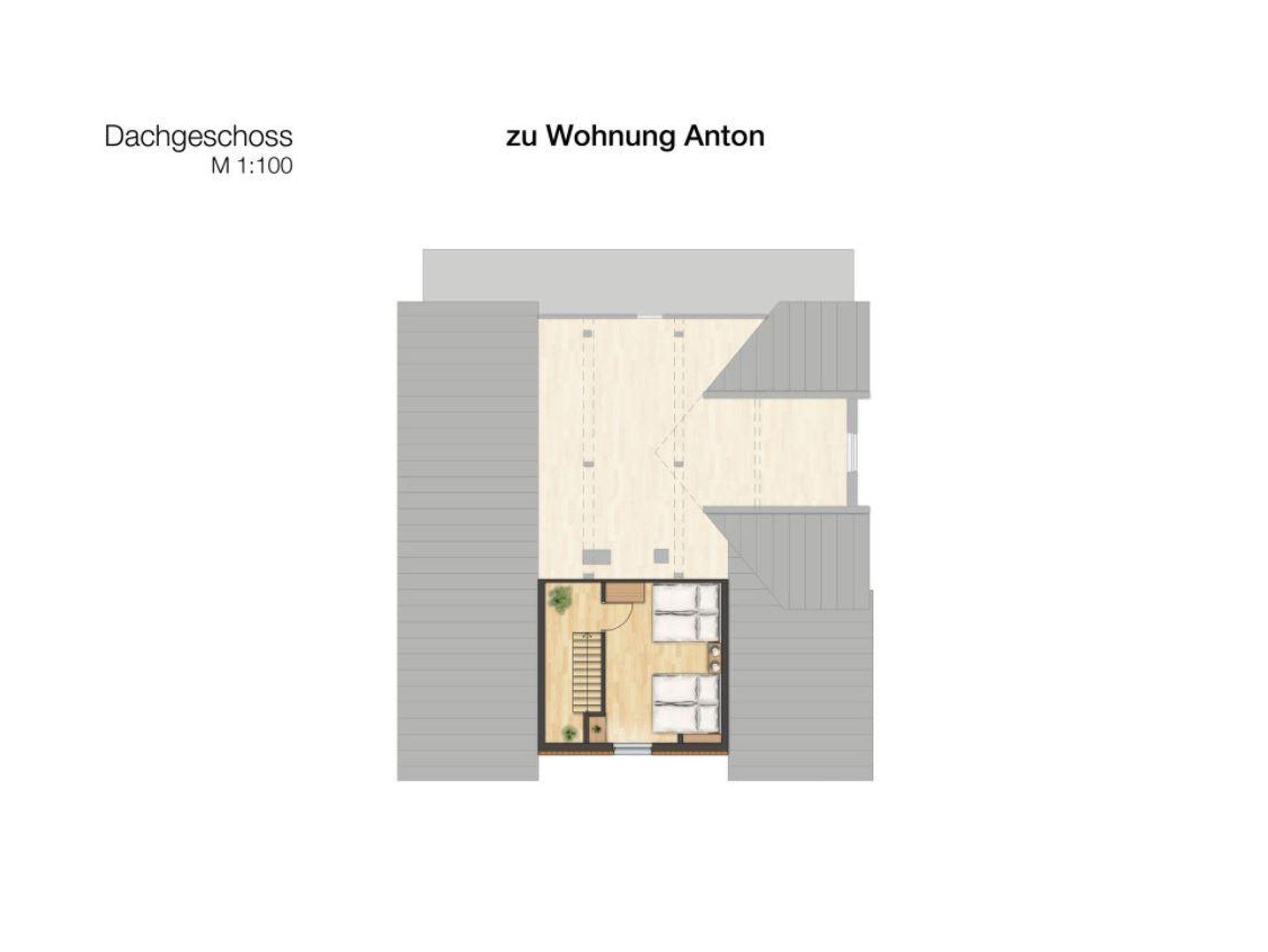 Die doppelgeschossige Wohnung „Anton“ verfügt über 8 Betten mit der Beistellmöglichkeit für Kinderbetten.