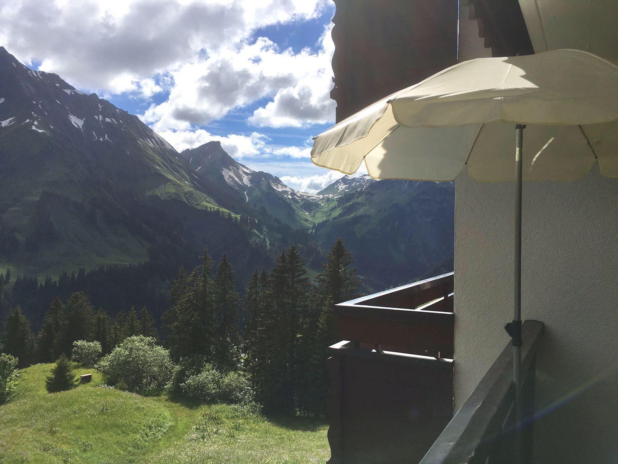 Fast alle Wohnungen haben einen Balkon in sonniger Lage mit Ausblick auf das Bergpanorama.