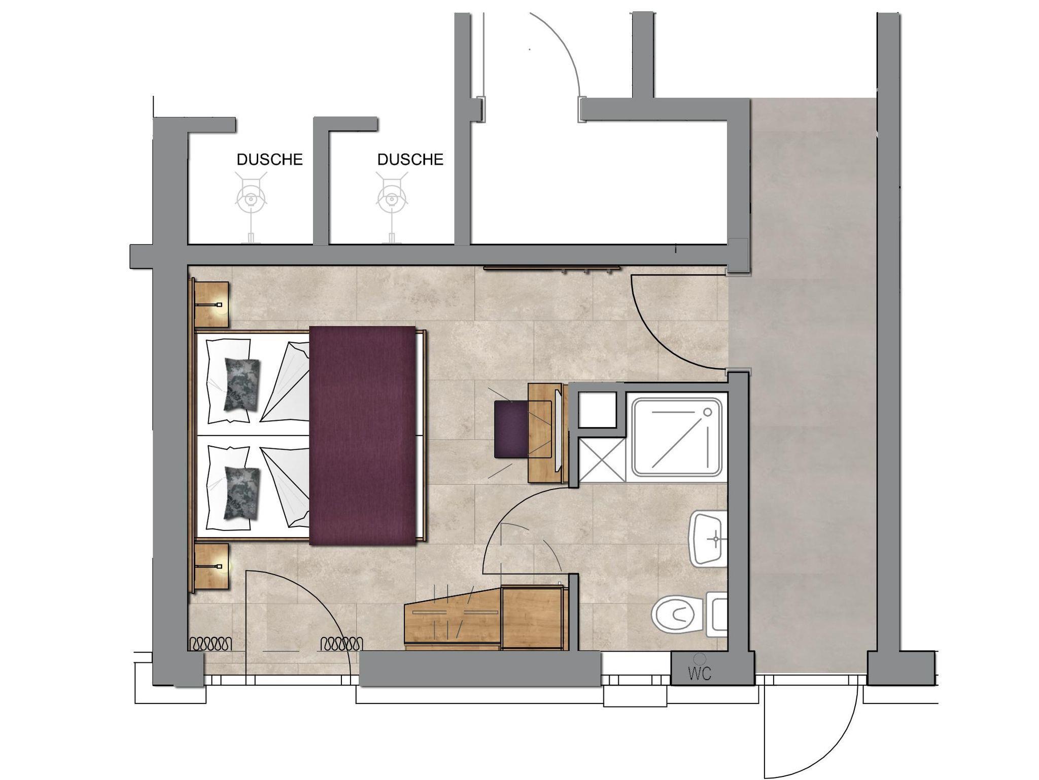 Helles Doppelzimmer im Untergeschoss mit 16 m²