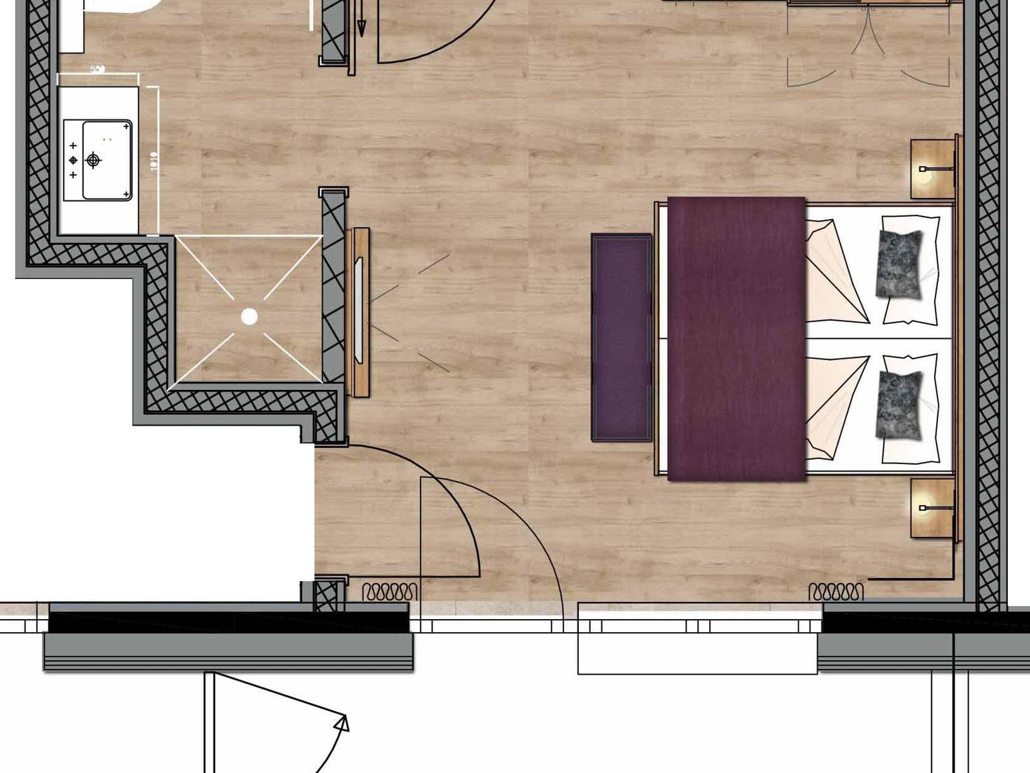 Helles und großzügiges Doppelzimmer im 1. Obergeschoss mit 24 m²