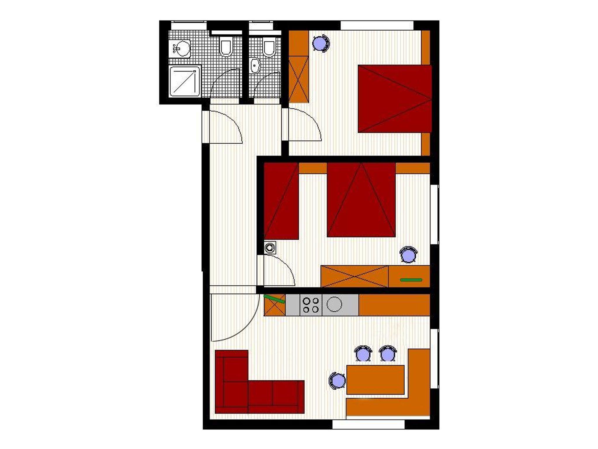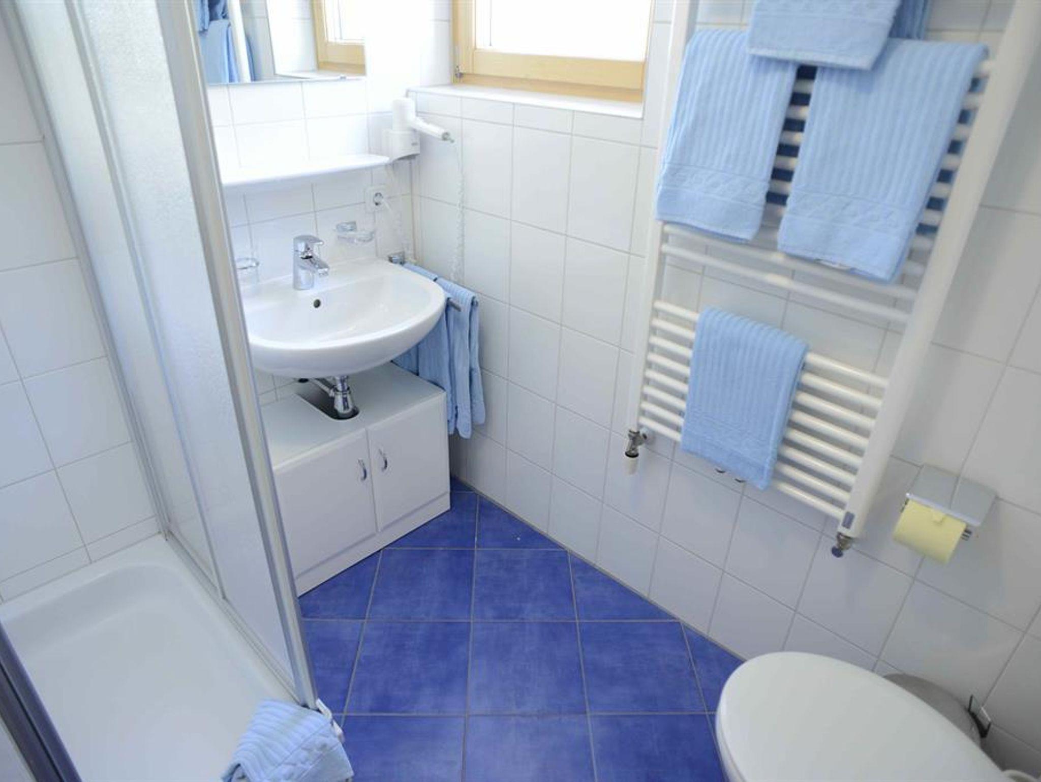 Geräumige Wohnung mit 1 Doppel- und 1 Dreibettzimmer, Dusche/WC (mit Haarfön), sep. WC, große, helle Wohnküche.