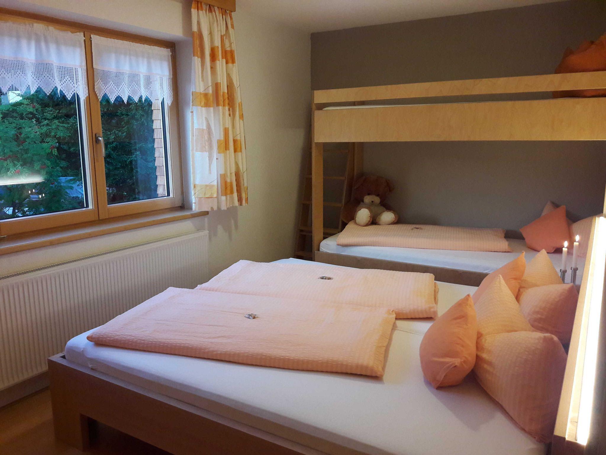 Großzügige Appartement, 53m² für 4 ? 6 Personen, befinden sich im 1. Stock, mit Balkon und Ausblick über unser herrliches Panorama, ausgestattet mit zwei Doppelzimmer, eines davon mit zusätzlichem Hochbett, einem großen Badezimmer mit Dusche und WC, Handuchwärmer, Fön und Kosmetikspiegel