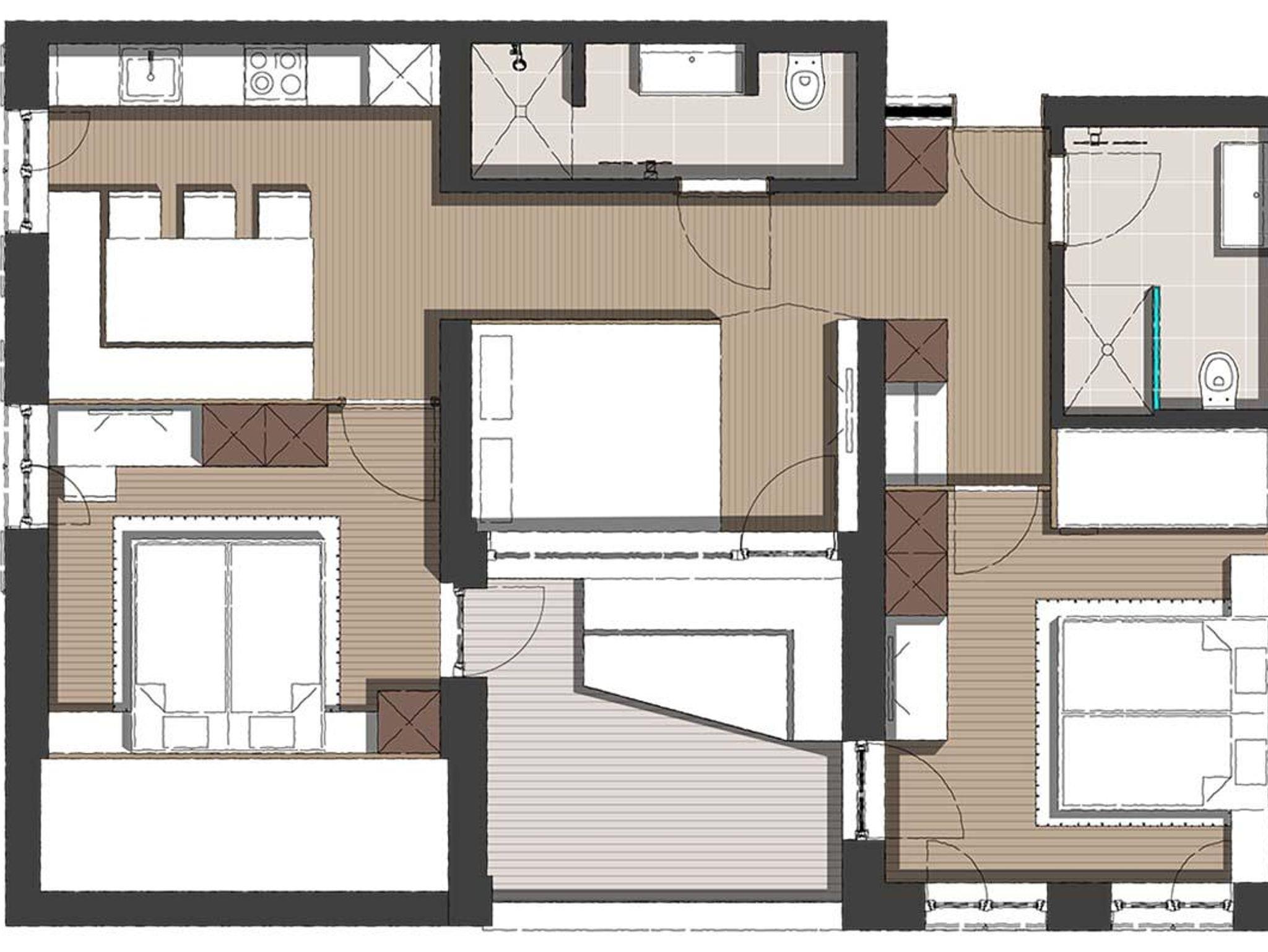 Tannberg ist ein ideales Familien-Apartment. Mit zwei Schlafzimmern, einer gemütlichen Wohnküche und einer rieseigen Liegewiese bietet das Apartment viel Platz zum Relaxen. Highlight ist ein großzügig überdachter Balkon. Auch was die Küchenausstattung angeht, ist Tannberg top befüllt: Dank des Kühlschranks, mehrerer Kochfelder und eines Geschirrspülers steht ausgiebigen Kochabenden im Urlaub nichts mehr im Wege.