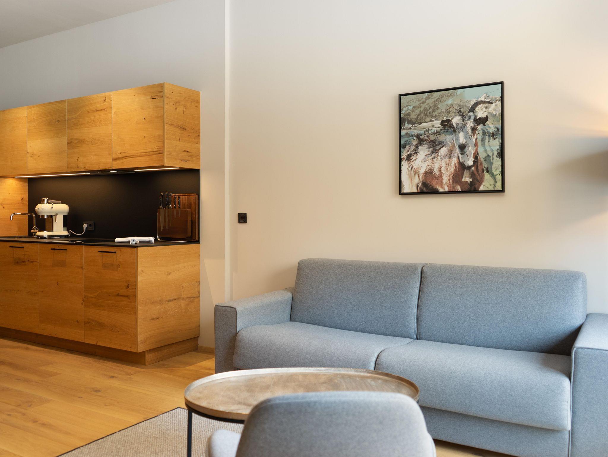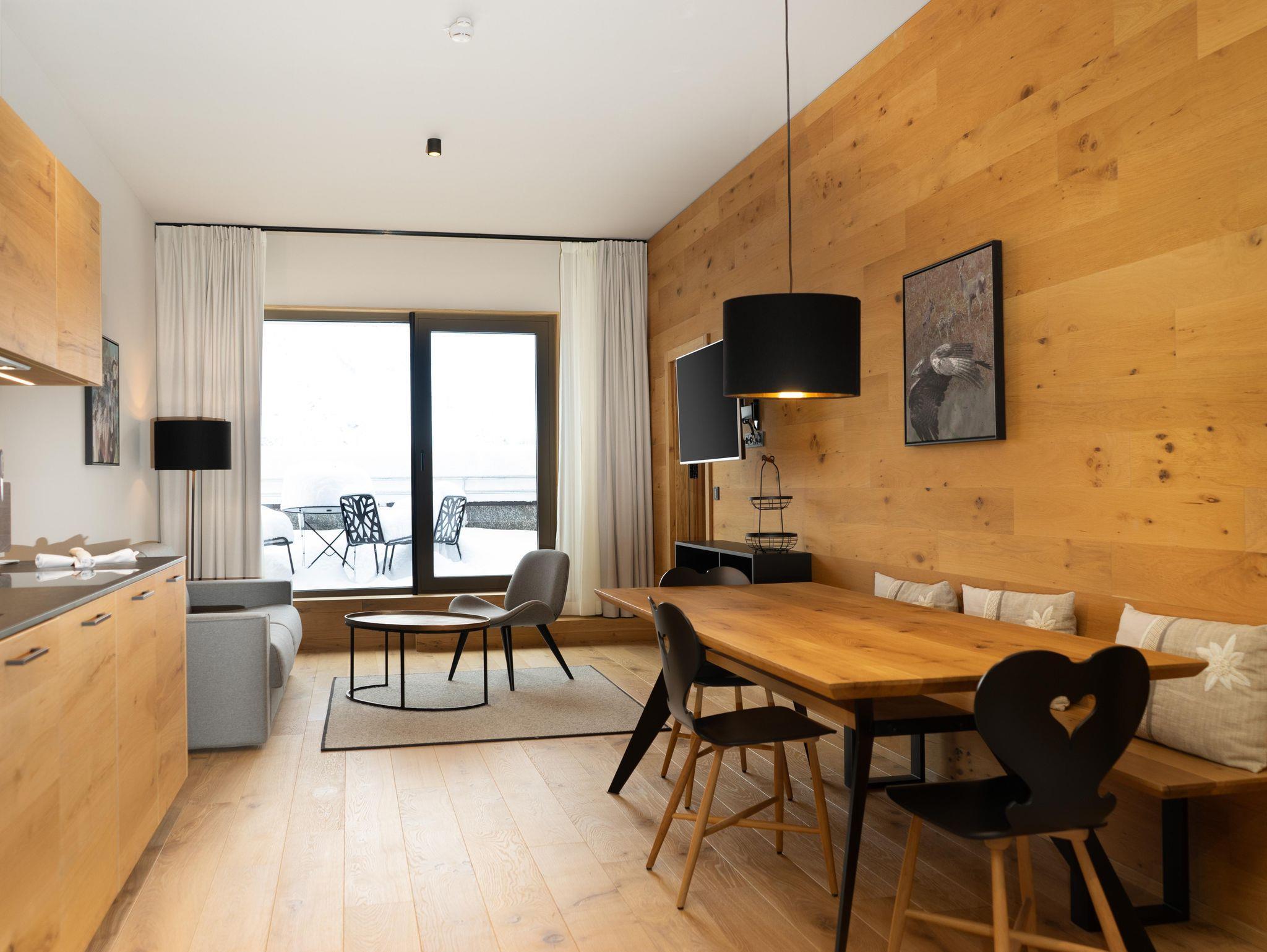 Auf 63 m 2 verfügen die Apartments über kostenloses WLAN, min. einen Smart-TV und einen Schranktresor. Die Küche ist mit Backofen, Induktions-Kochfeld, Geschirr, Koch-Utensilien, Kaffeemaschine, Wasserkocher und Toaster voll ausgestattet. Die Suites haben Zugang zu einem Balkon/einer Terrasse, das Badezimmer ist mit einer Badwanne oder Regendusche ausgestattet, die Gästetoilette befindet sich in einem separaten Raum. Ihr Auto stellen sie sicher in der dazugehörigen Tiefgarage ab, wo auch Ladestationen für E-Autos zur Verfügung stehen. Im Resort befindet sich ein Lift, sowie eine Waschküche mit Waschmaschine und Trockner. Kulinarisch umsorgt werden unsere Gäste mit unserem Frühstücksangebot, Brötchen- und Kühlschrankservice, sowie über den Automatenshop, der regelmäßig mit frischen Speisen unseres Haubenkochs A. Shala befüllt wird.