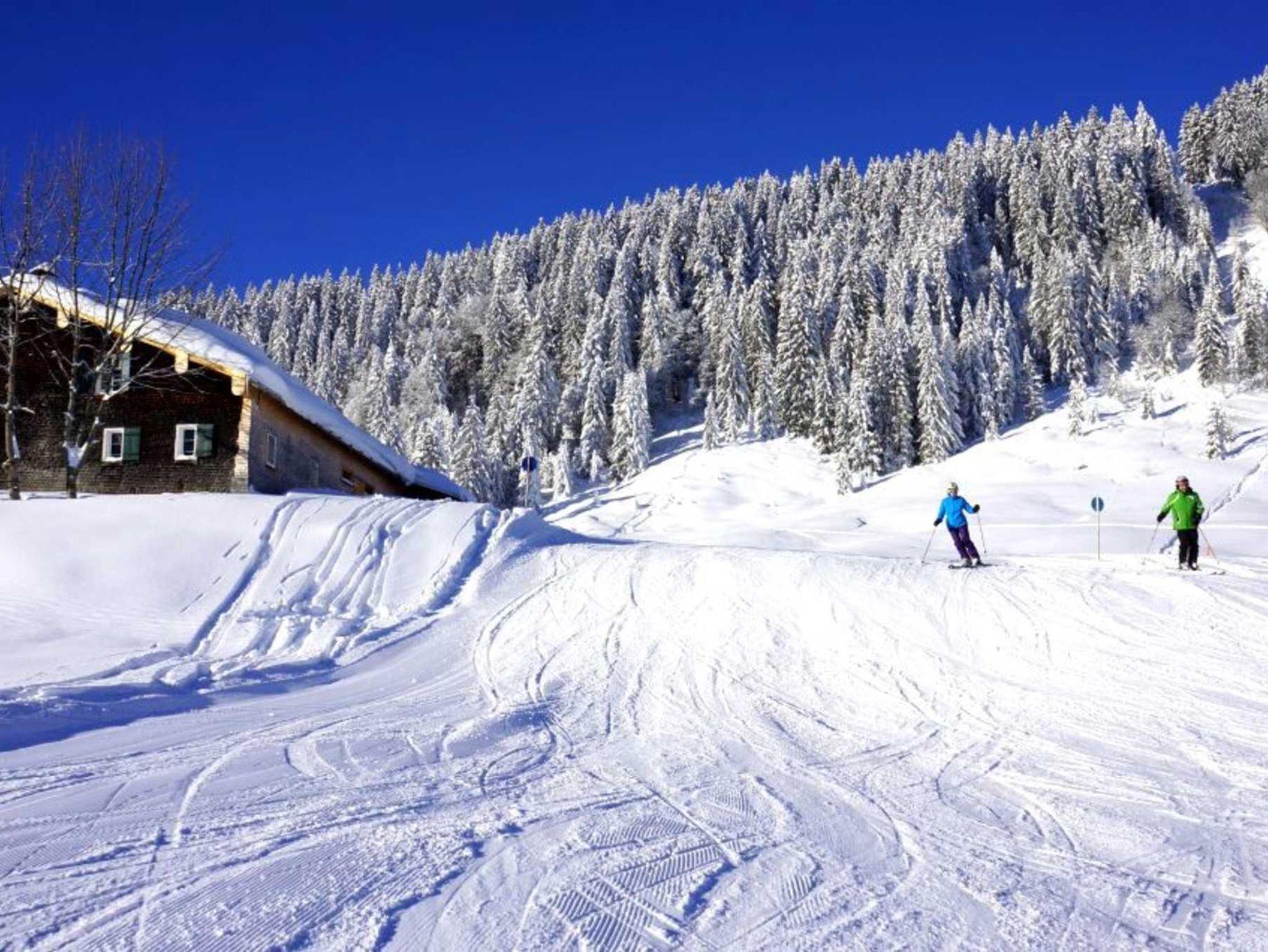 von Schwarzenberg und in der Mitte von dem Wander- und Schigebiet Bödele. Eine heimelige Stube mit Holzofen, kleine Küche(Elektroherd mit Backofen, Kaffeemaschine, Mikrowelle, Kühlschrank,