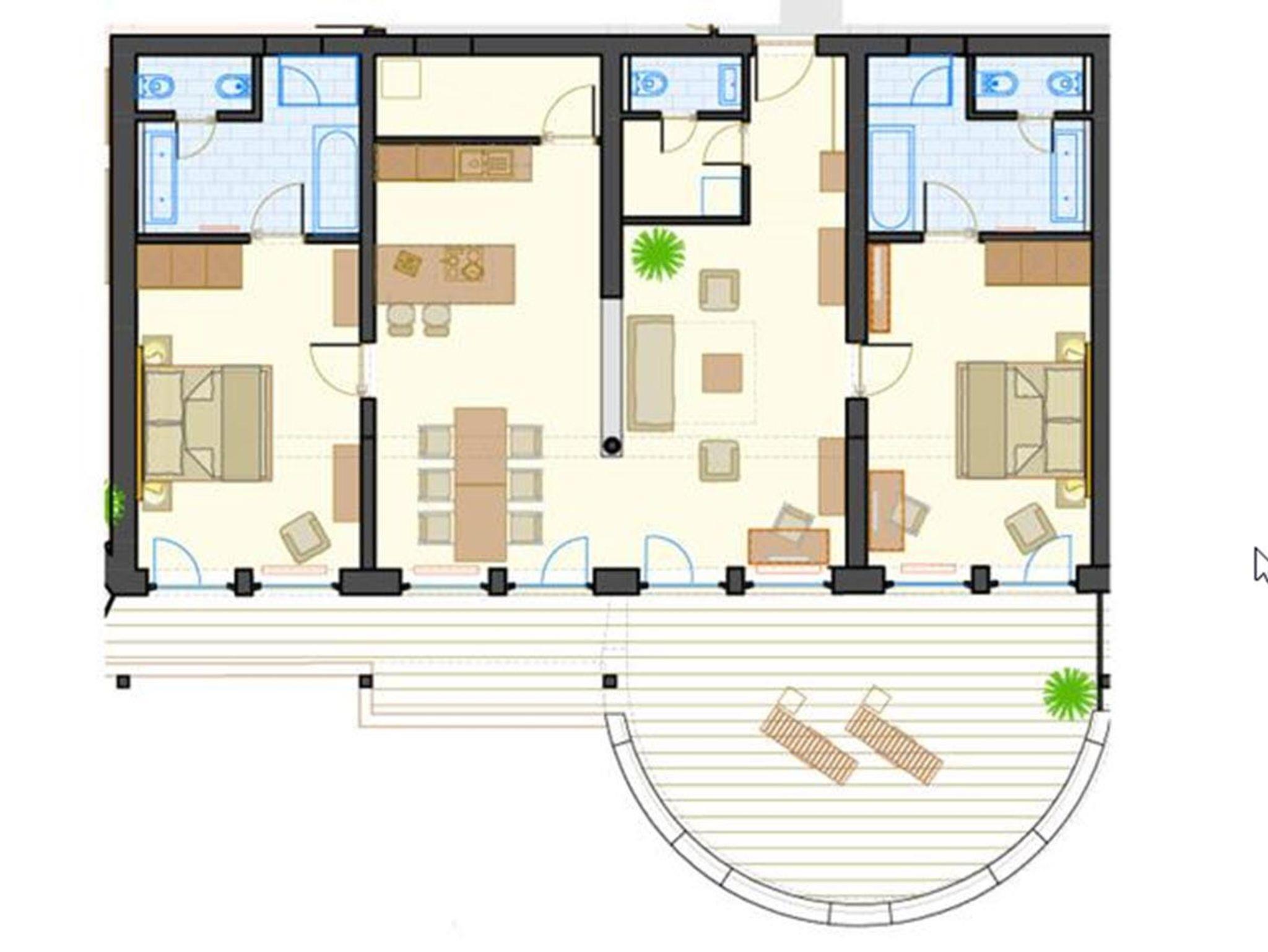 *ca.115m² *1-6 Personen *2 Schlafzimmer *1 Wohnzimmer mit Schlafsofa offen zur vollausgestatteten Küche mit großem Essbereich *2 Badezimmer mit Doppelwaschtisch, Dusche, Badewanne und separatem WC/Bidet *1 WC extra *große Südterrasse, ca.45m²