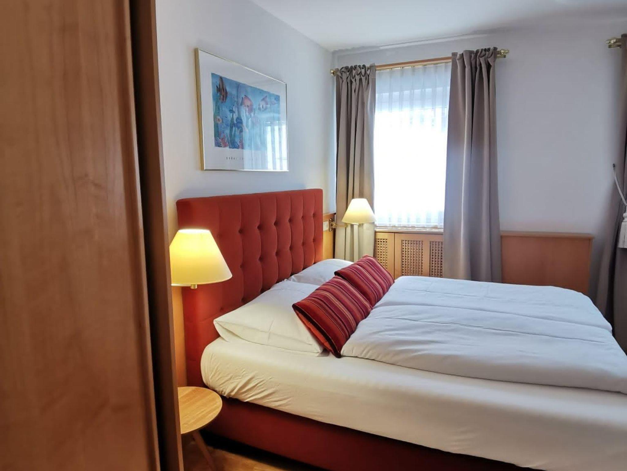 Nordseitiges Doppelzimmer ohne Balkon mit Dusche/WC, TV, Radio, Zimmersafe und Wlan.