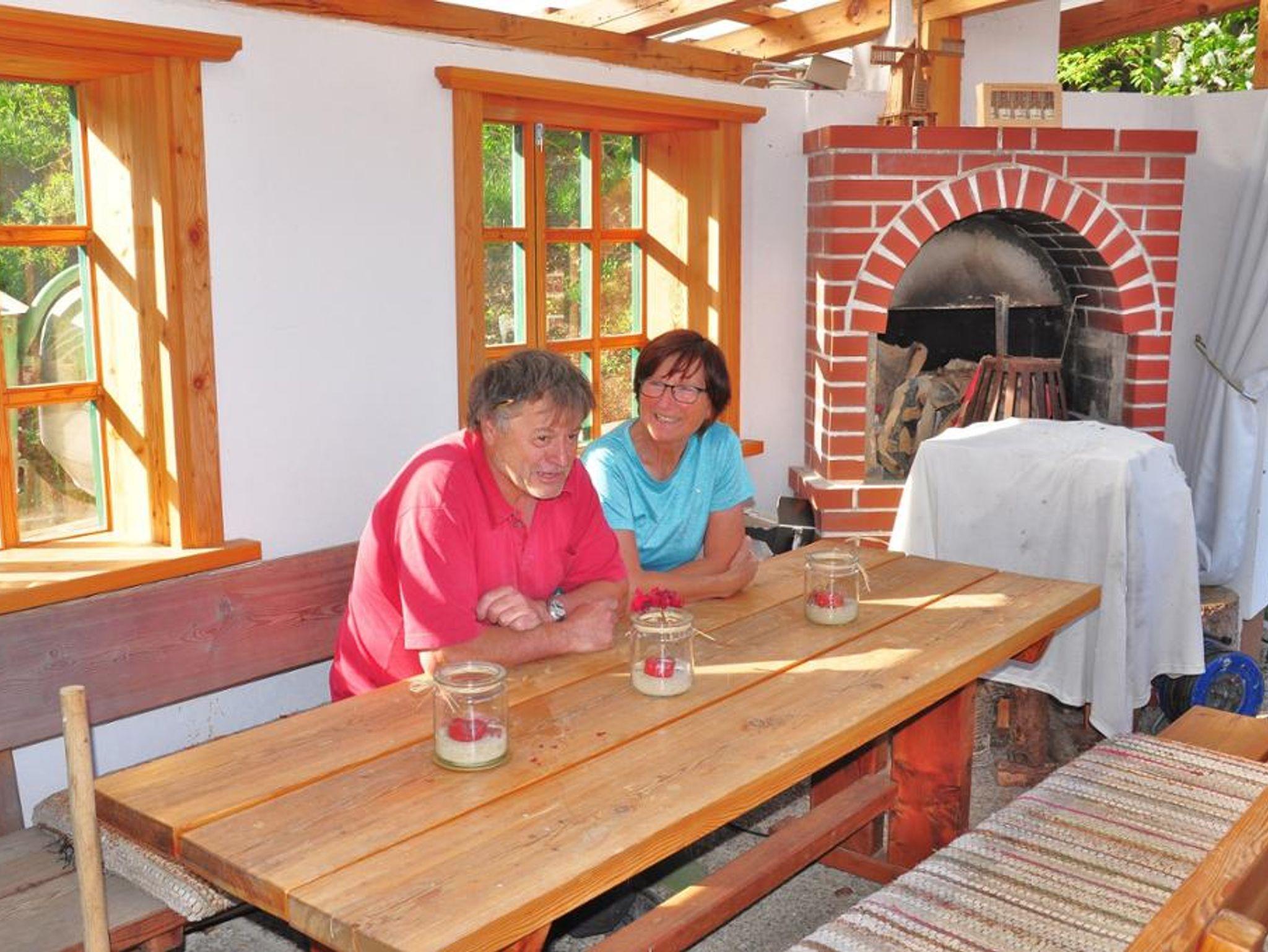 Ein schattig, überdachter Grillplatz ist von üppigen Bäumen umgeben. Die Privatparkplätze an der Pension nutzen Sie kostenfrei.