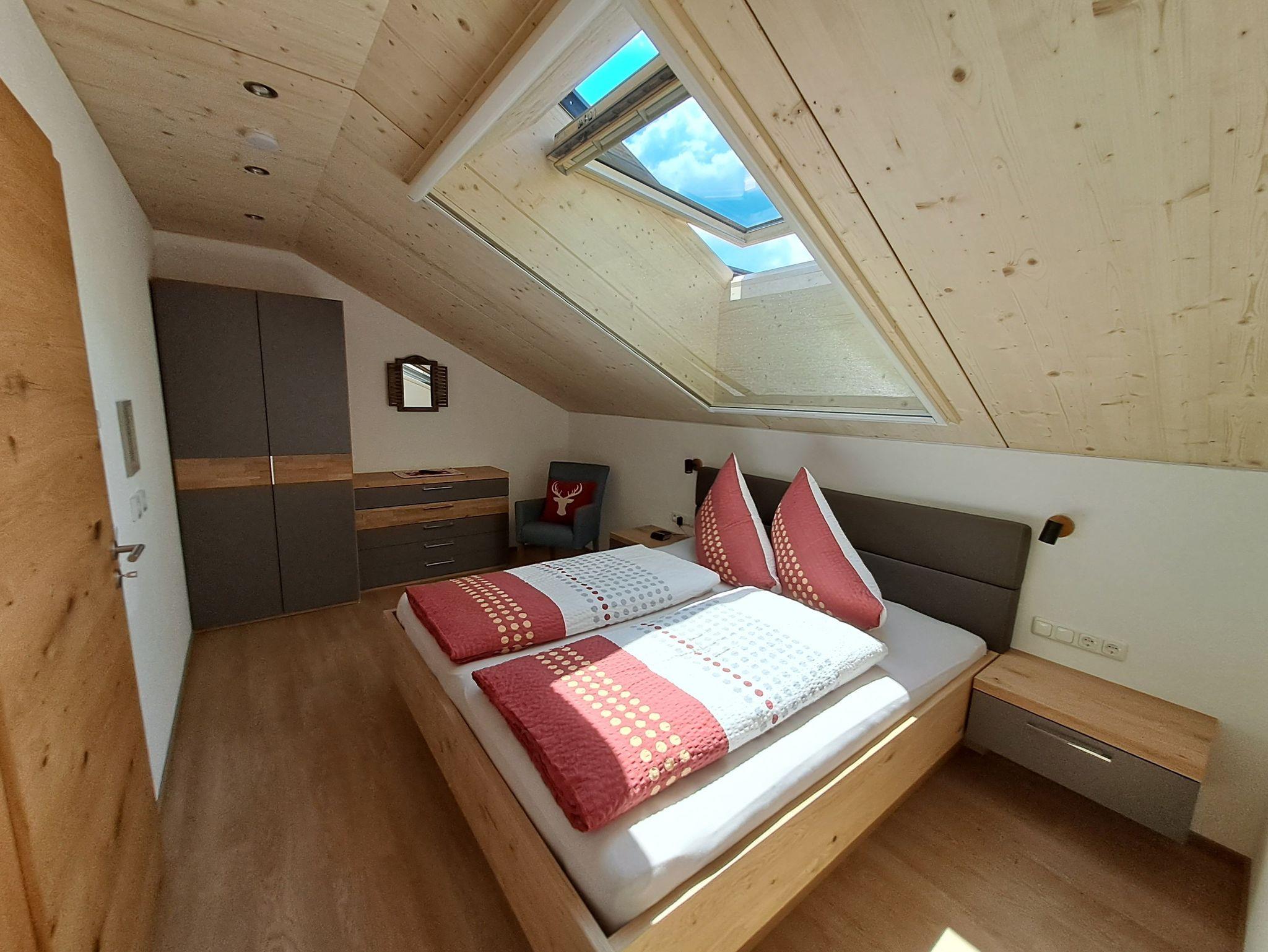 großem Dachfenster (voll automatisch) wartet auf Sie ein bequemes Doppelbett (180x200, mit Bettwäsche) und ebenfalls ein großer Flat- TV.