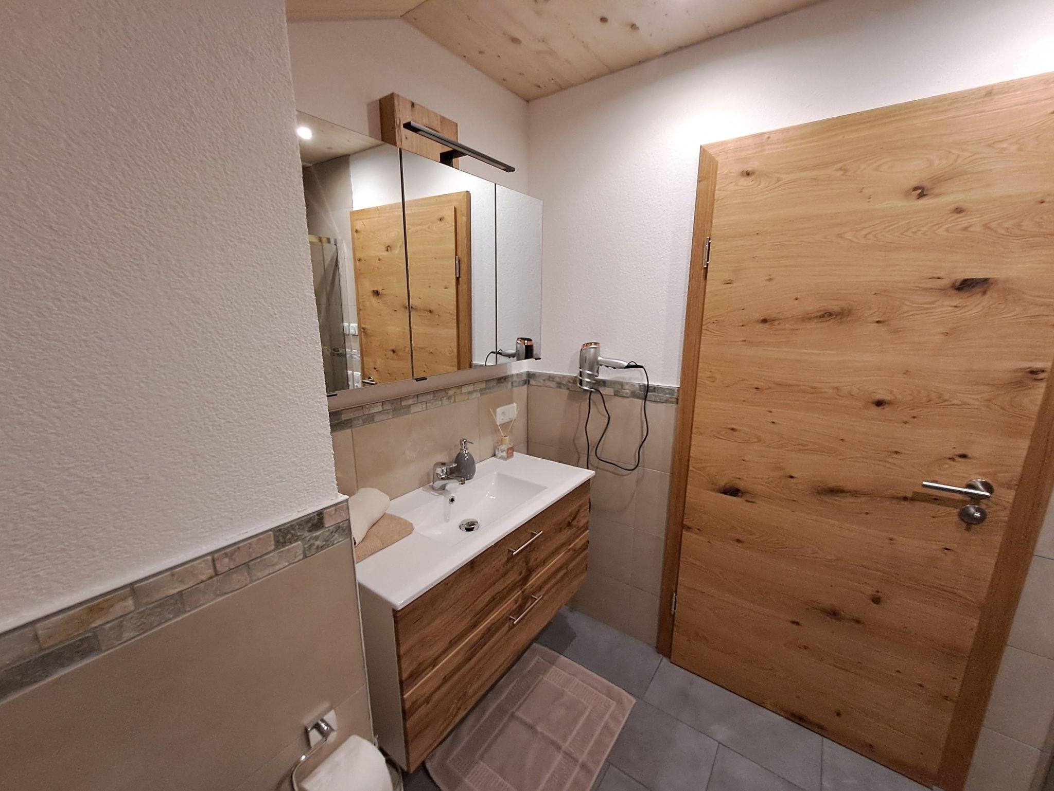 In unserem 2019 neu erbauten Haus, vermieten wir seit Sommer 2023 eine gemütliche Ferienwohnung. Sie verfügt über einen eigenen Eingang und einen schönen sonnigen möblierten Südbalkon. Die Wohnung ist ausgestattet mit allem was Sie in Ihrem Urlaub brauchen. Schlafzimmer mit Doppelbett und Flat- TV; Wohnbereich mit voll ausgestattetem Küchenblock, Essecke, ausziehbarer Couch und Flat- TV; Dusche und WC. Parkplatz direkt vor dem Haus. Absperrbarer Fahrrad- und Skiraum. Hunde sind bei uns herzlich willkommen (ein Hund erlaubt!)