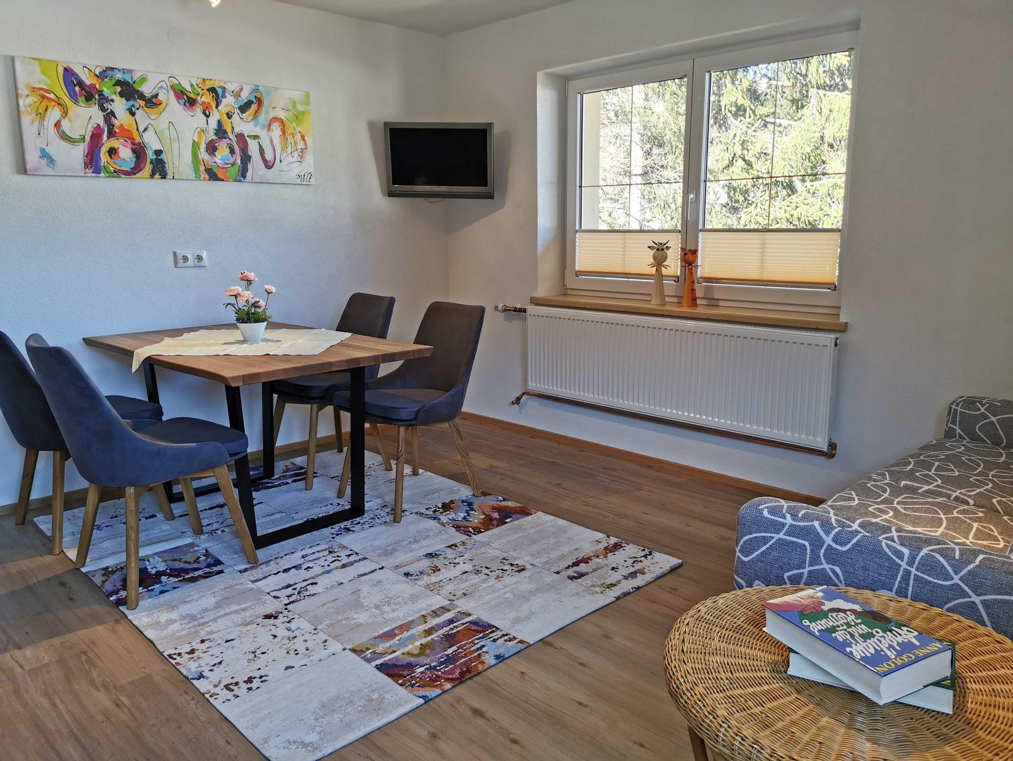 Unsere neu errichtete Ferienwohnung Rot Flüh im 1. Stock, mit großem Süd-/Ostbalkon ist heimelig eingerichtet und der perfekte Rückzugsort für 2 Personen nach einem ergiebigen Wandertag in den Tannheimer Bergen.
