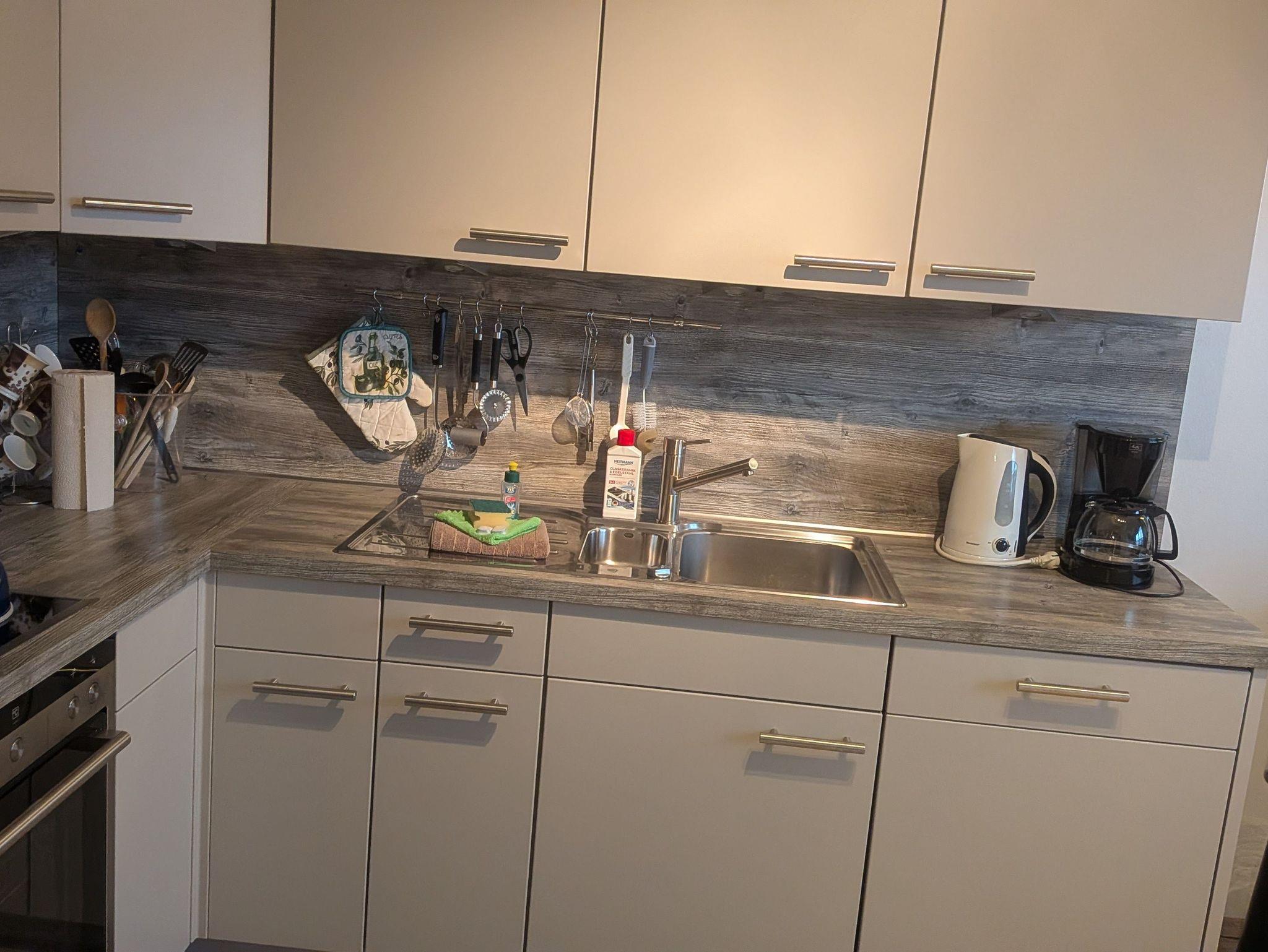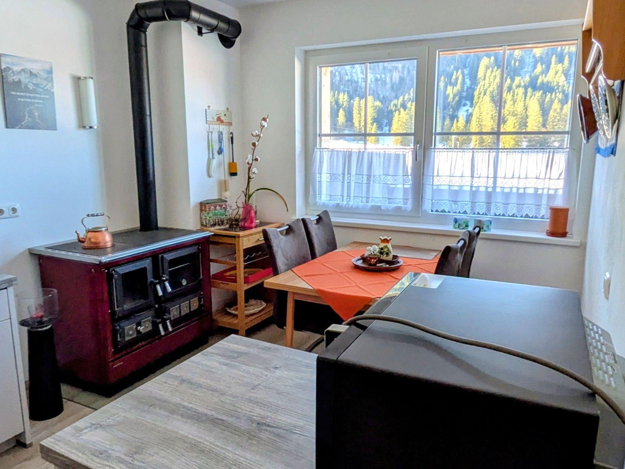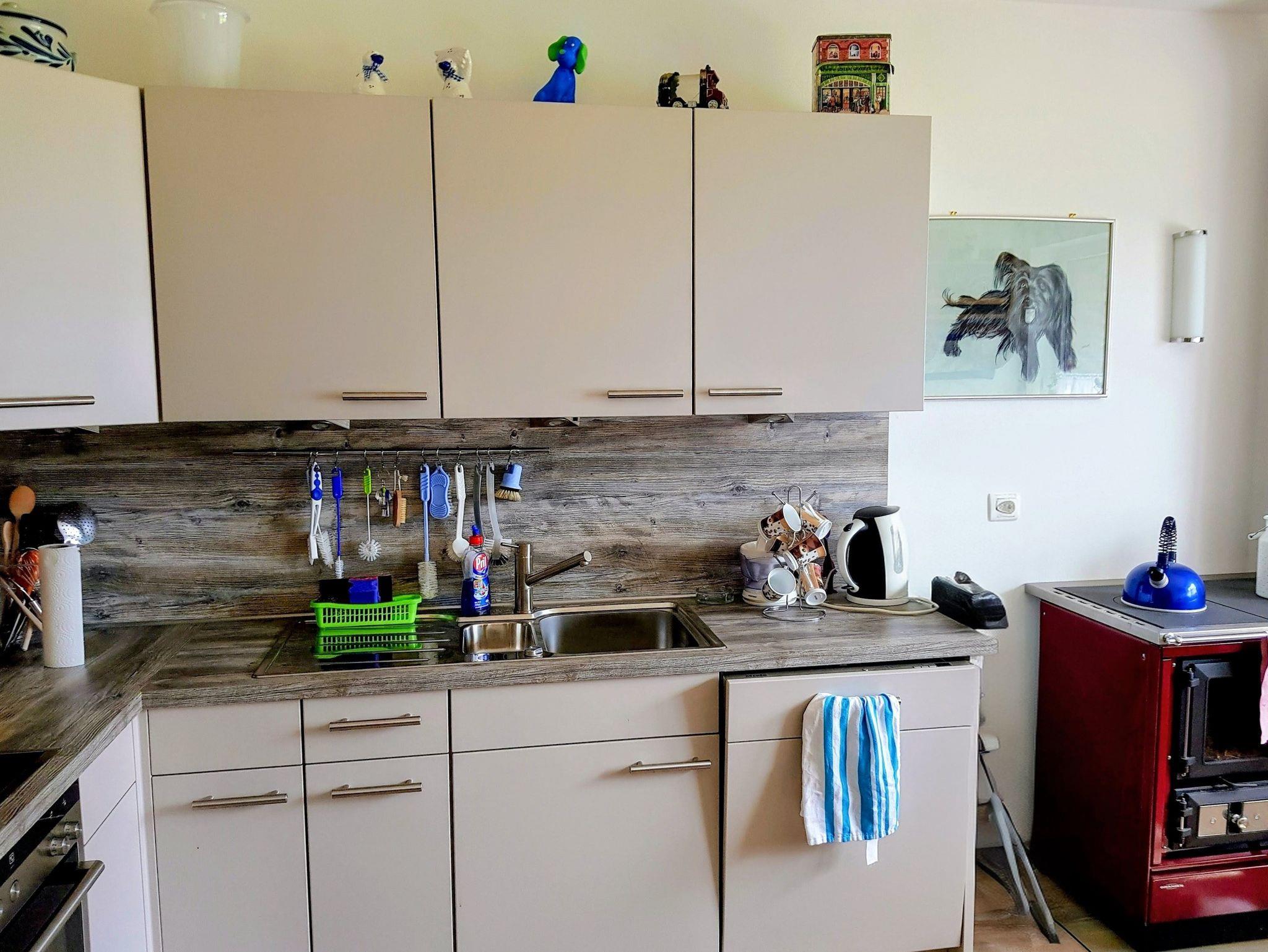 Die komplett ausgestattete Küche mit Cerankochfeld, Backofen, Kaffeemaschine und Standardutensilien lässt keine Wünsche offen. Ein Highlight ist der Holzofen, welcher auch als Pizzaofen genutzt werden kann.