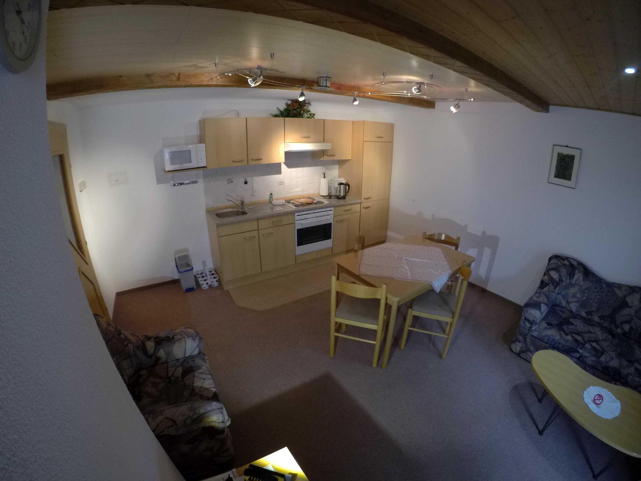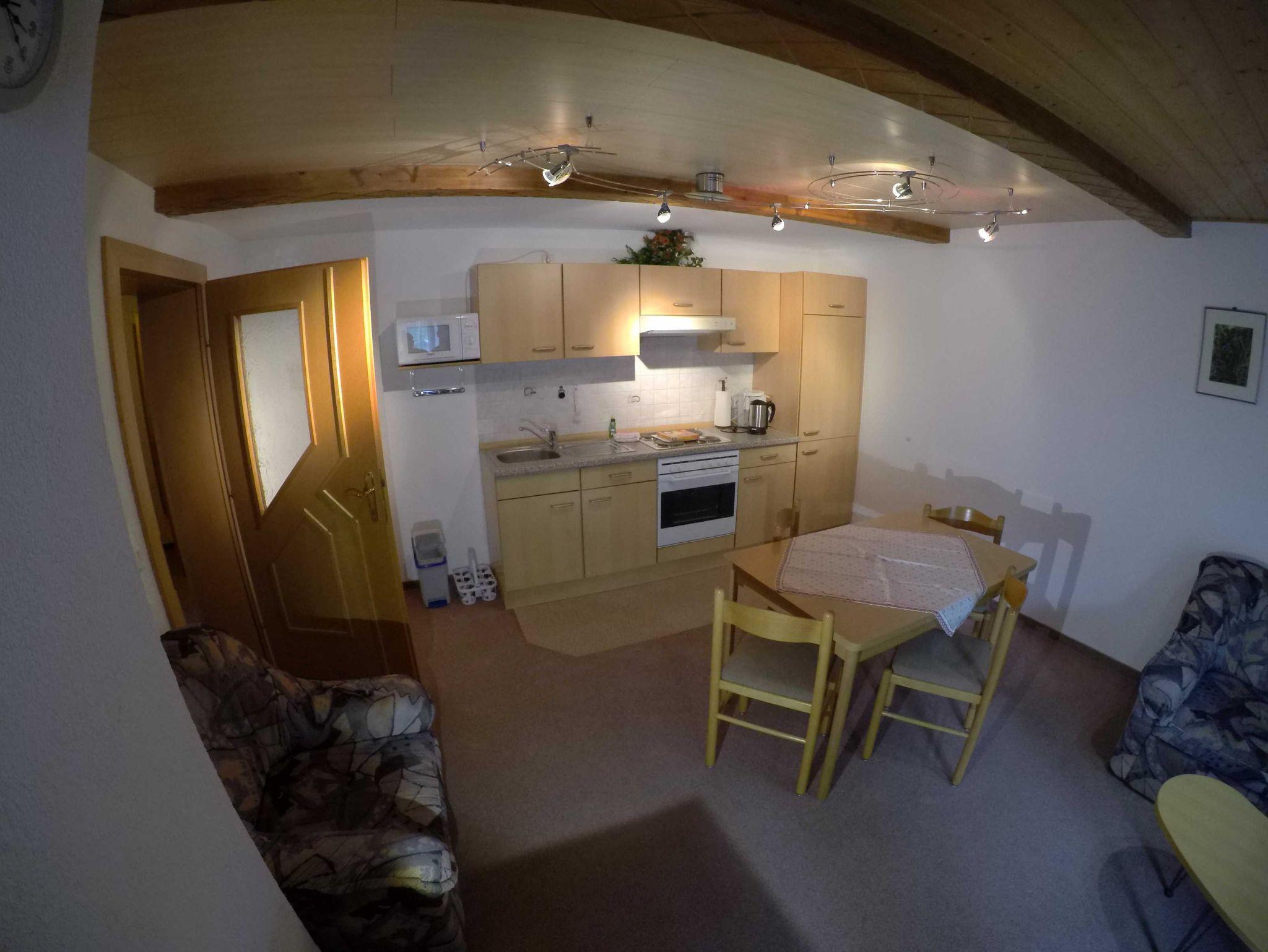 In der Wohnküche befindet sich eine gemütliche Polsterecke mit Sessel und Flachbildfernseher mit SAT-TV.
