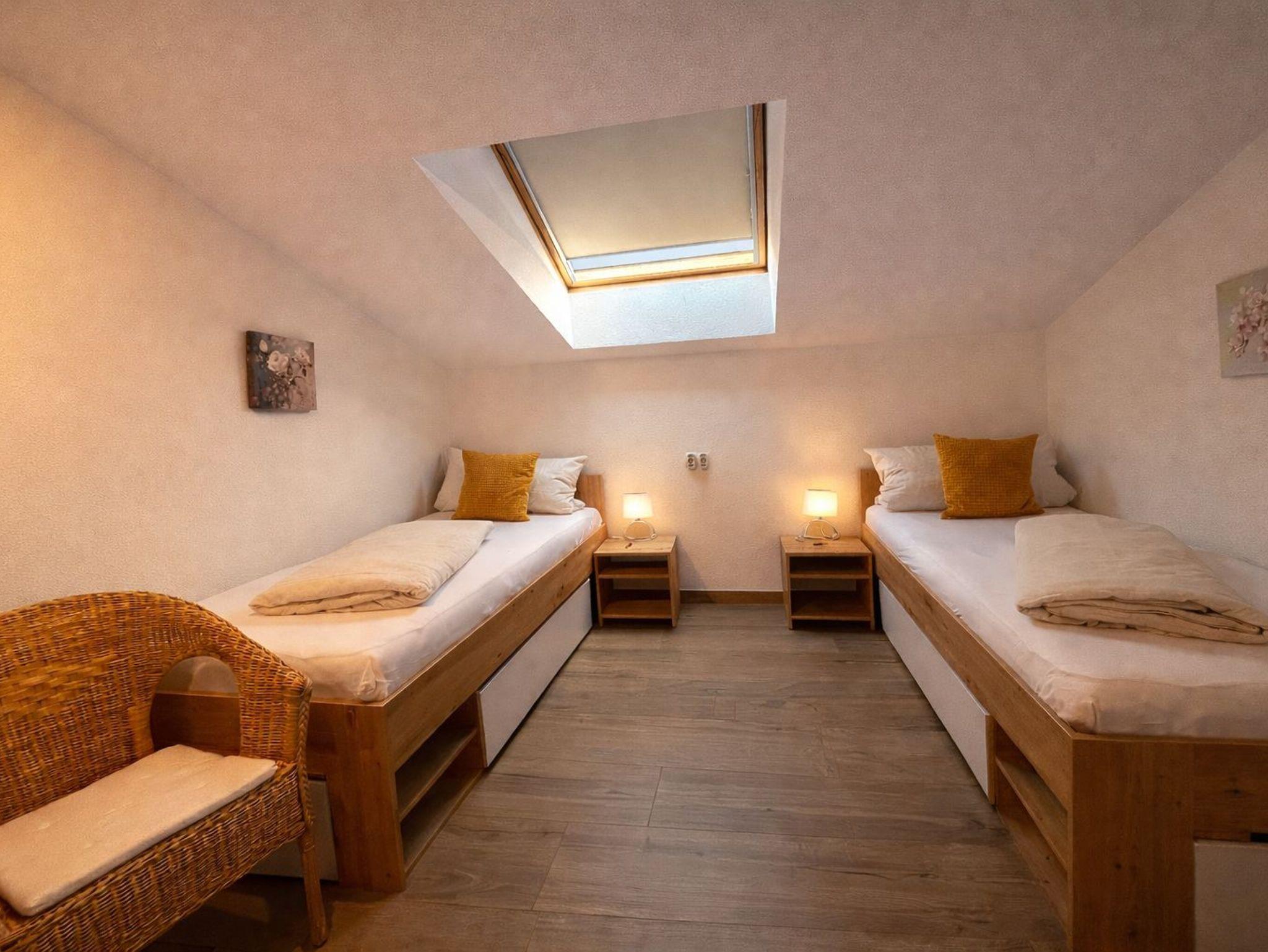 Die Wohnung verfügt über eine voll ausgestattete Küche (inkl. Essbereich), 2 getrennte Schlafzimmer, einen Wohnbereich mit gemütlicher Wohnlandschaft, einen TV sowie einen Pelletsofen und ein Bad mit einer Dusche und WC.