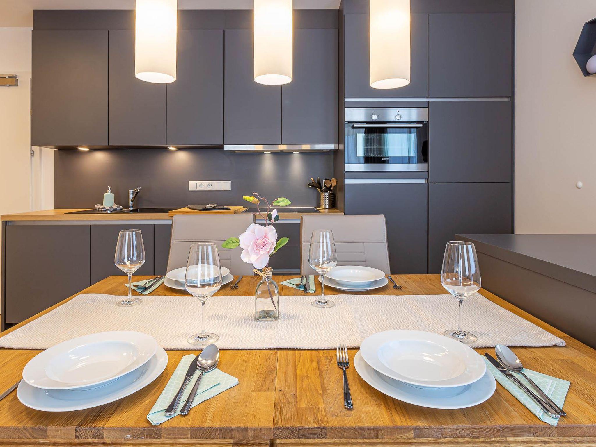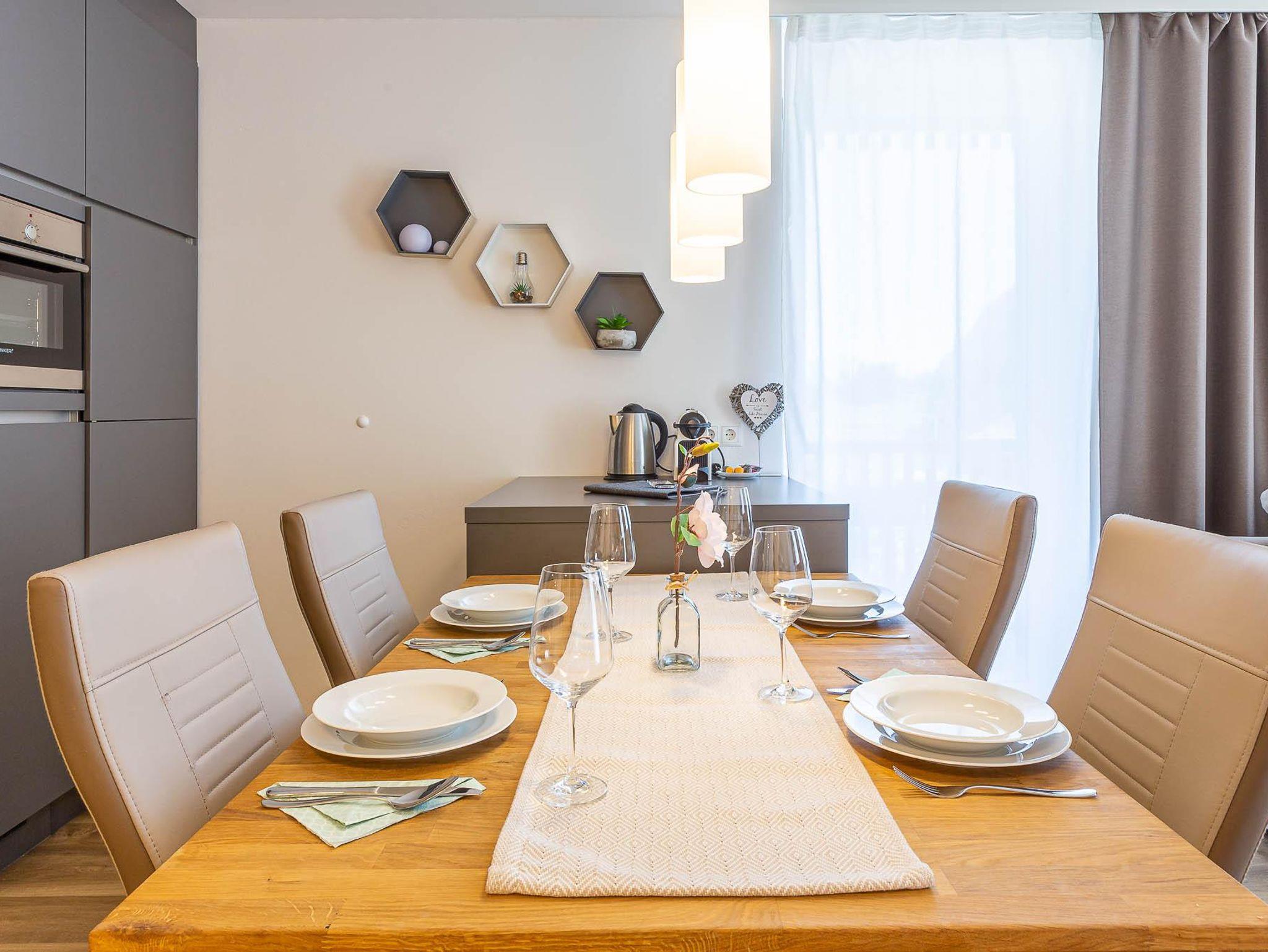 Willkommen in Ihrer neuen Ferienwohnung! Genießen Sie den Komfort eines separaten Schlafzimmers, eines separaten WCs und eines Badezimmers mit Sauna. Die moderne Küche ist mit dem Wohnbereich und einem Essplatz verbunden. Entspannen Sie auf der Terrasse mit herrlichem Blick auf die Berge. Die Wohnung im Erdgeschoss ist neu eingerichtet und bestens ausgestattet – perfekt für Ihren Aufenthalt!