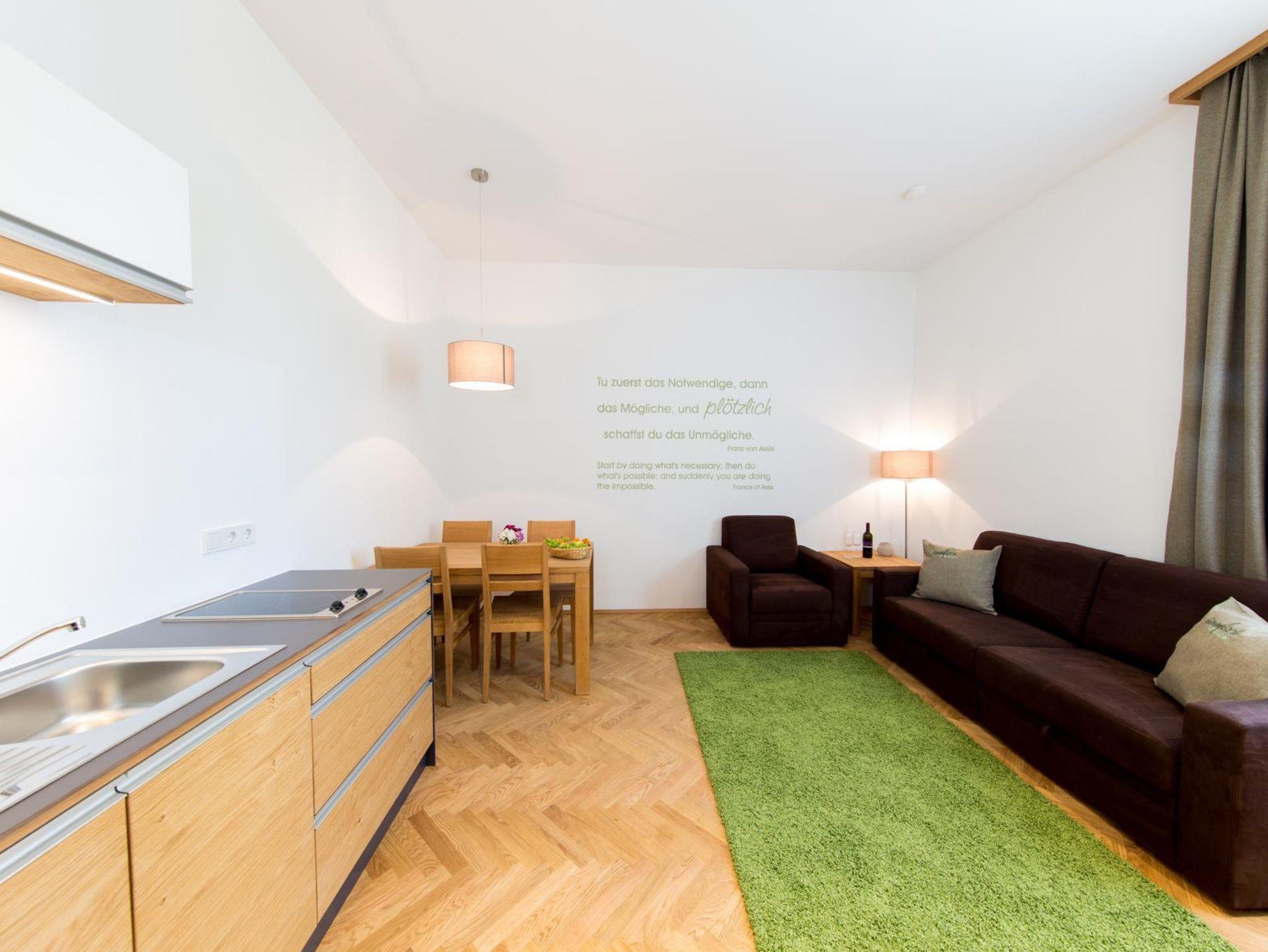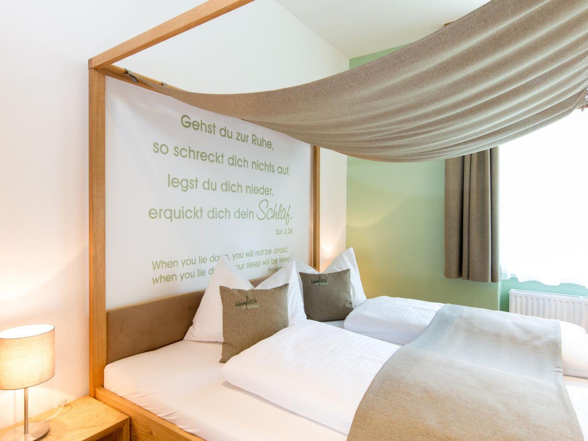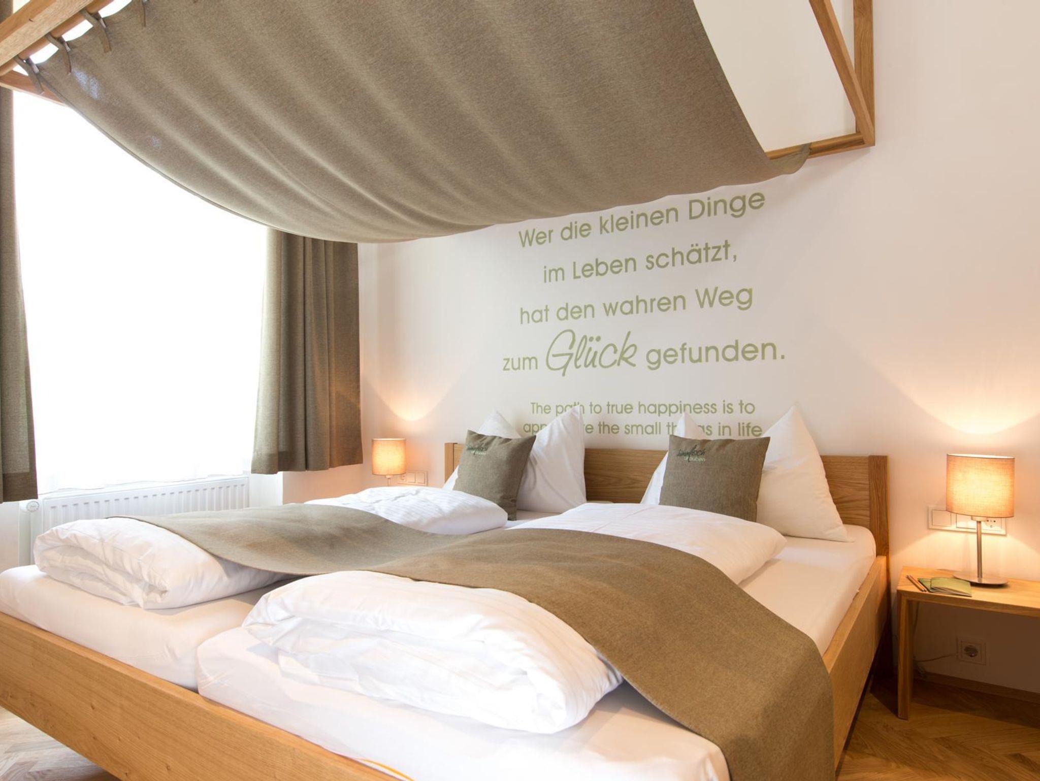 Nach einem behutsamen Umbau und einer Sanierung des Hauses stehen Ihnen seit Ende Mai 2015 vier Appartements im Obergeschoß für eine Auszeit zur Verfügung. Wie in all unseren Häusern wurde auch hier viel Augenmerk auf natürliche Materialien und eine angenehme Wohnatmosphäre gelegt. Zentrales Element aller Appartements sind die Himmelbetten, die teilweise eine überraschende Ausführung aufweisen. Besonderes Highlight ist das Appartement Hl. Dreifaltigkeit, das einen direkten Blick aus dem Wohnzimmer auf den Altar der angrenzenden Kirche ermöglicht.