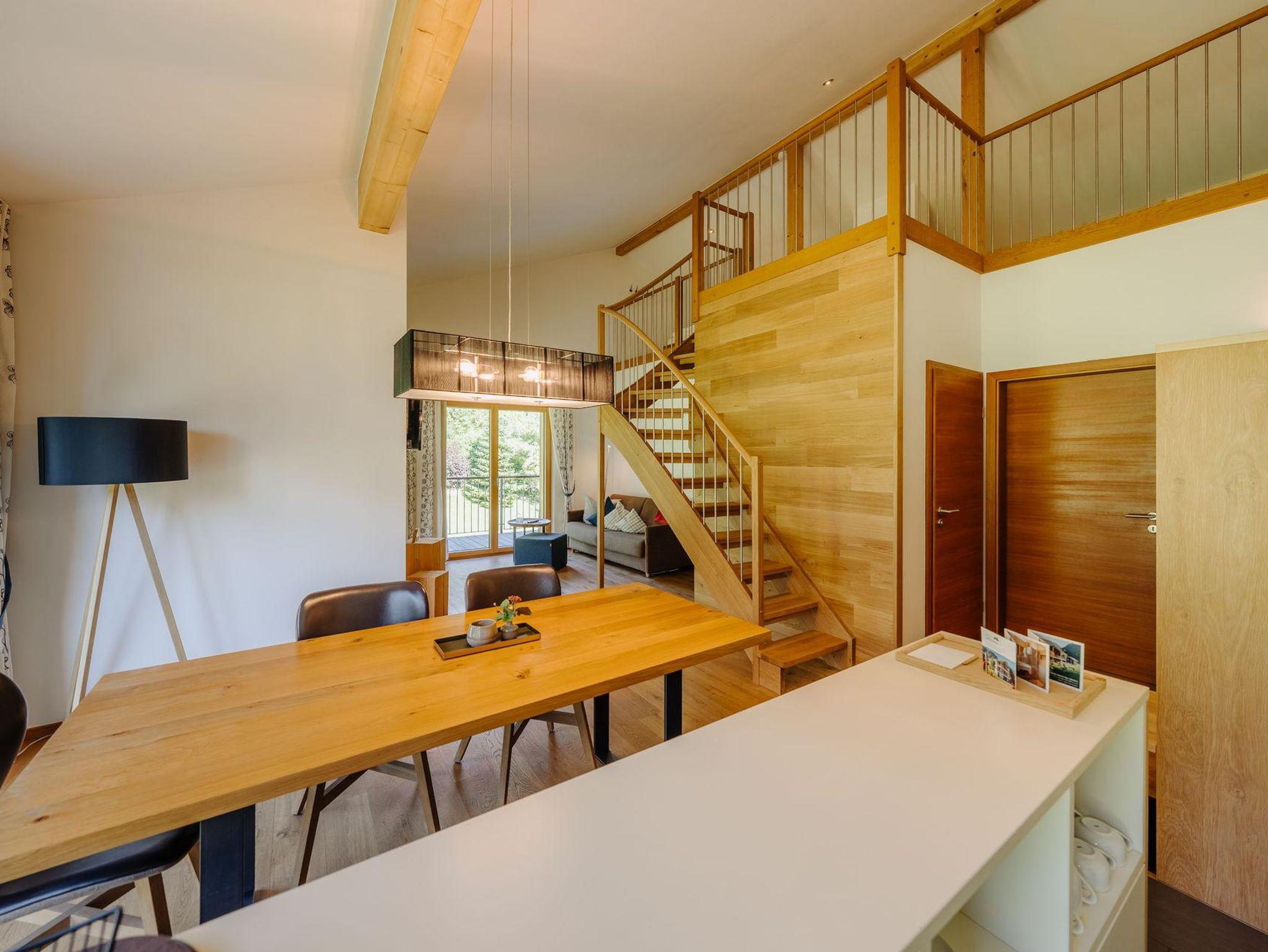 Gemeinsames Kochen und Verweilen, aber auch genügend Privatsphäre zum Zurückziehen wurden bei der Planung bedacht. Erleben Sie einen zauberhaften Ausblick auf die vor Ihnen liegende Alpenlandschaft auf dem 28m² großen Balkon.
