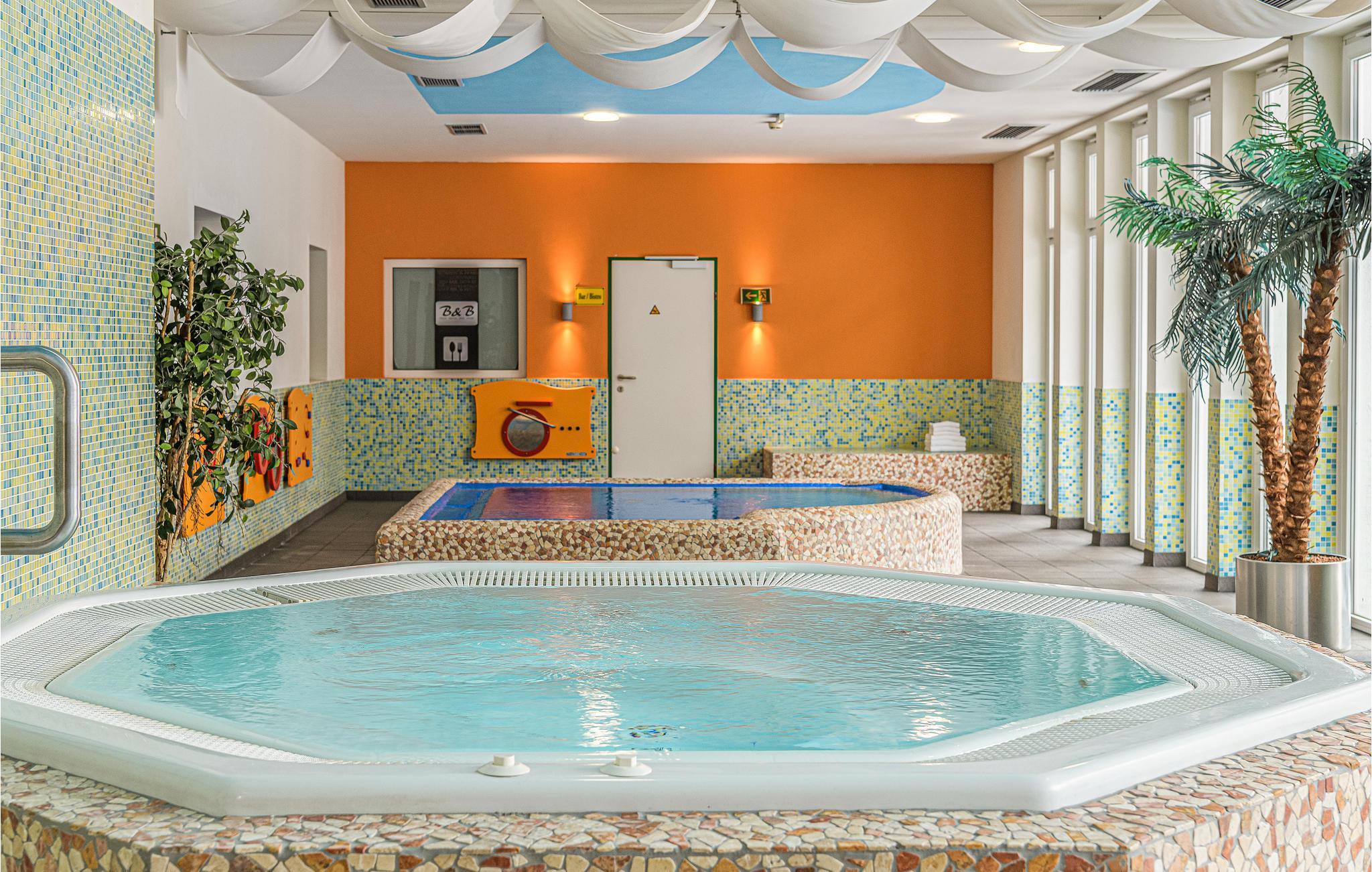 Nach Ihren Wanderungen und Aktivitäten in der Natur können Sie an den Nachmittag das Wellnessprogramm des Resorts nutzen. Ein Außenpool sowie mehrere Whirlpool- Poolbecken im Inneren laden Sie zum Baden oder Schwimmen ein. Auch eine gemeinsame Sauna steht Ihnen bereit. An Ihre Kleinen wurde ebenfalls gedacht. Schöne Spielräume werden Ihre Kinder viele Stunden Vergnügen bringen und sie auspowern.