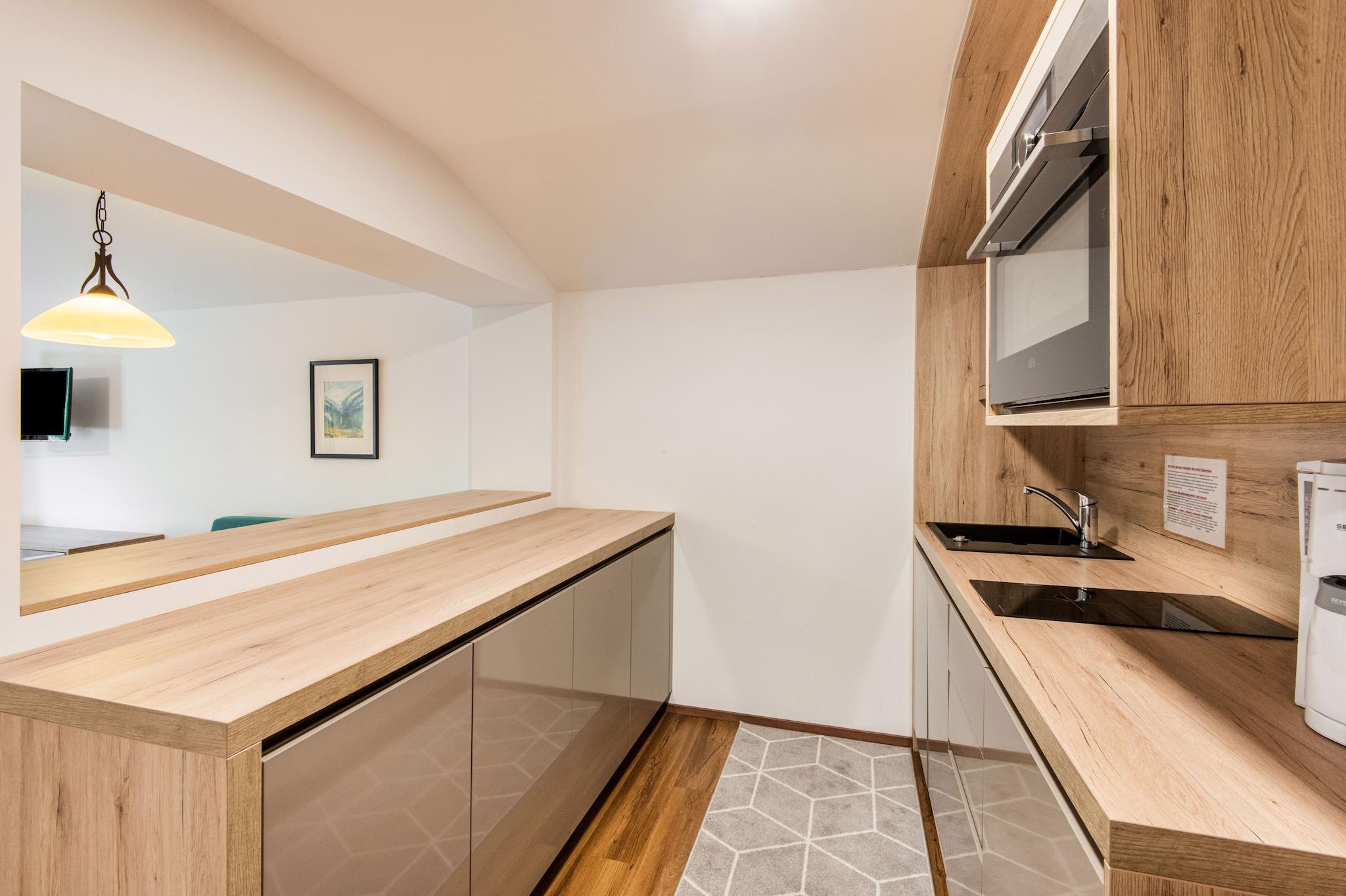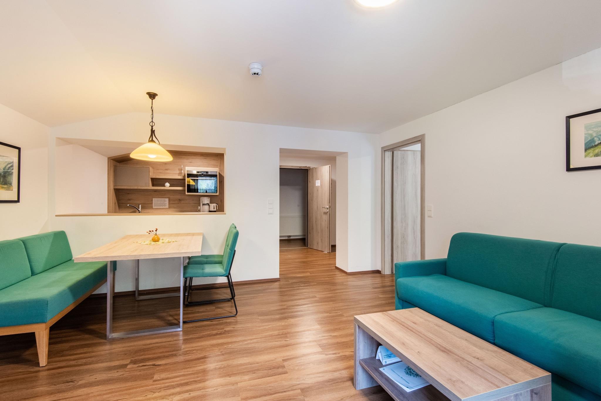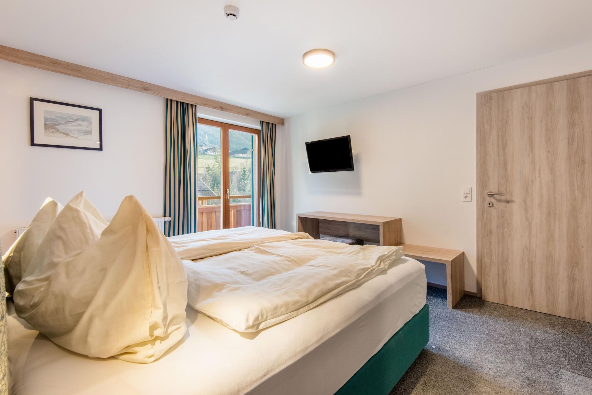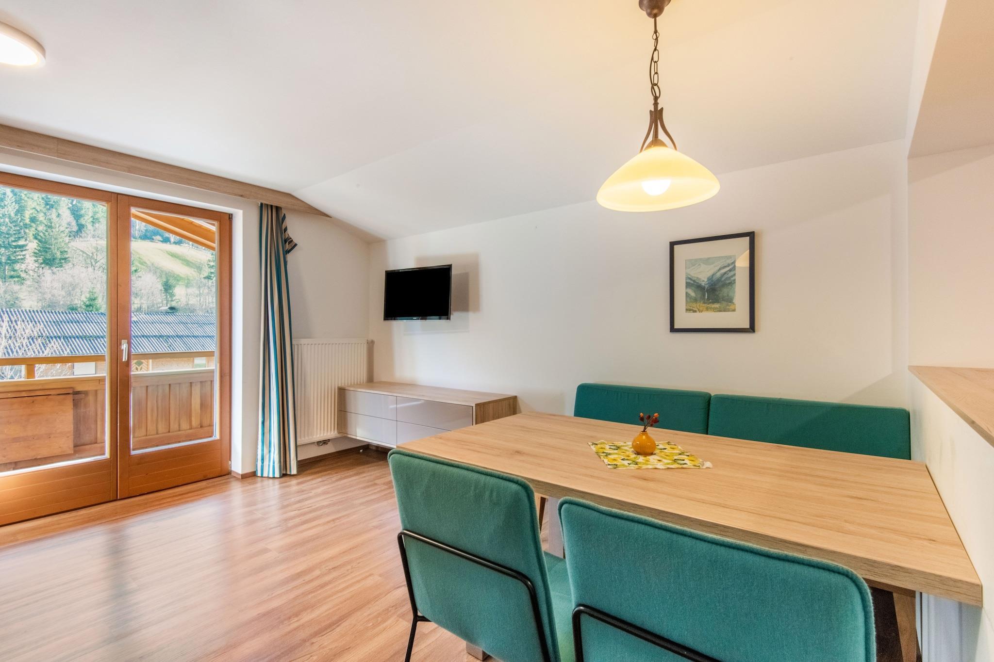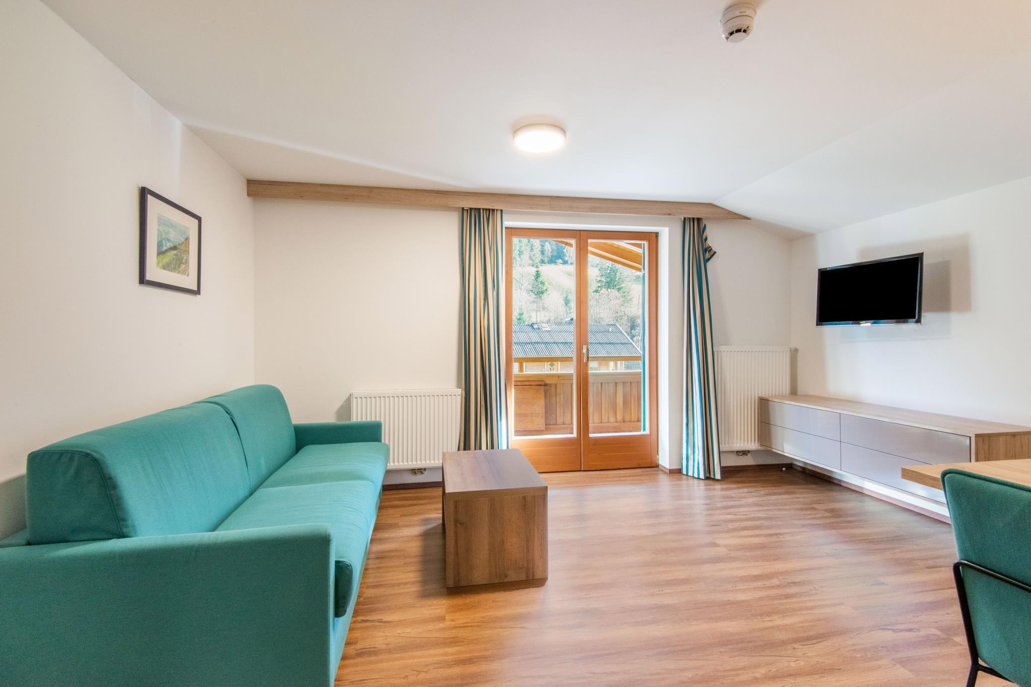 This cozy holiday apartment for a maximum of 4 people is located in a holiday home in the small town of Wald im Pinzgau in Salzburgerland, near Königsleiten, the nearby Hohe Tauern National Park and the Zillertal Arena ski area. The famous Krimml Waterfalls are also worth a visit! In addition to a spacious living room with a modern open kitchen, this holiday apartment has 1 bedroom with its own bathroom. In the spacious living room there is the option for the 3rd and/or 4th person to sleep on a sofa bed. The apartment has its own terrace and also access to the common facilities. Think, for example, of a football game in the Sky Sports Bar, a game of table tennis or a refreshing swim in the shared outdoor pool (open from the beginning of June to the end of September). It is also possible to use a comprehensive breakfast or the wellness facilities such as the sauna and solarium for a fee. In April/May and November/beginning of December there is no staff and unfortunately breakfast cannot be offered. In the immediate vicinity of the holiday home (approx. 11 km from the town center) is the Zillertal Arena ski area with 150 kilometers of slopes and 52 lifts. With the towns of Zell am Ziller, Gerlos, Königsleiten, Wald and Krimml/Hochkrimml, this ski area stretches from the Tyrolean Zillertal to the Salzburg Pinzgau and is versatile, family-friendly and guaranteed to have snow. The area around Wald im Pinzgau offers a wide range of leisure and recreational activities in every season and the varied landscape has something to offer everyone.