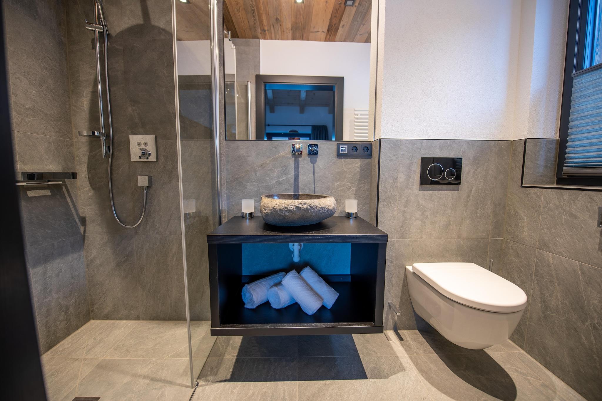 The small holiday village with cozy, lovingly furnished houses, each with a cozy Swedish stove is comfortably located in the middle of mountains. High-quality and modern furnished holiday homes in alpine style await you. All bedrooms have their own bathroom and a Smart TV with the streaming services Sky and Netflix. The small settlement was built sustainably with materials mostly from the area, whereby the connection to the history of the surrounding region has not been lost. Geothermal heat heats the entire facility and there are charging stations for electric cars in the carport (for a fee). Wald im Pinzgau (885 m above sea level) is located in Oberpinzgau at the foot of the Gerlos Pass between Mittersill and Krimml. Your holiday resort offers the perfect backdrop for relaxing holidays near the world-famous Krimml Waterfalls and the Großvenediger. Tyrol combined with the quiet atmosphere around the Salzburger Großvenediger is a perfect magic formula for your holiday! In summer, the area around Tyrol is ideal for hiking and biking. When the weather is sunny, a round of golf at the golf course 25 km away is also worthwhile. Those looking for a little more action can explore the area by bike or go rock climbing. After a long day in the fresh air, the sauna house in the garden is also a popular meeting place. The sauna is available per chalet for 1 hour a day between 16:00 and 21:00 and can be reserved for use one day in advance. Please note that you must pay the obligatory final cleaning and tourism tax separately on site. The fees for this are displayed separately when booking.