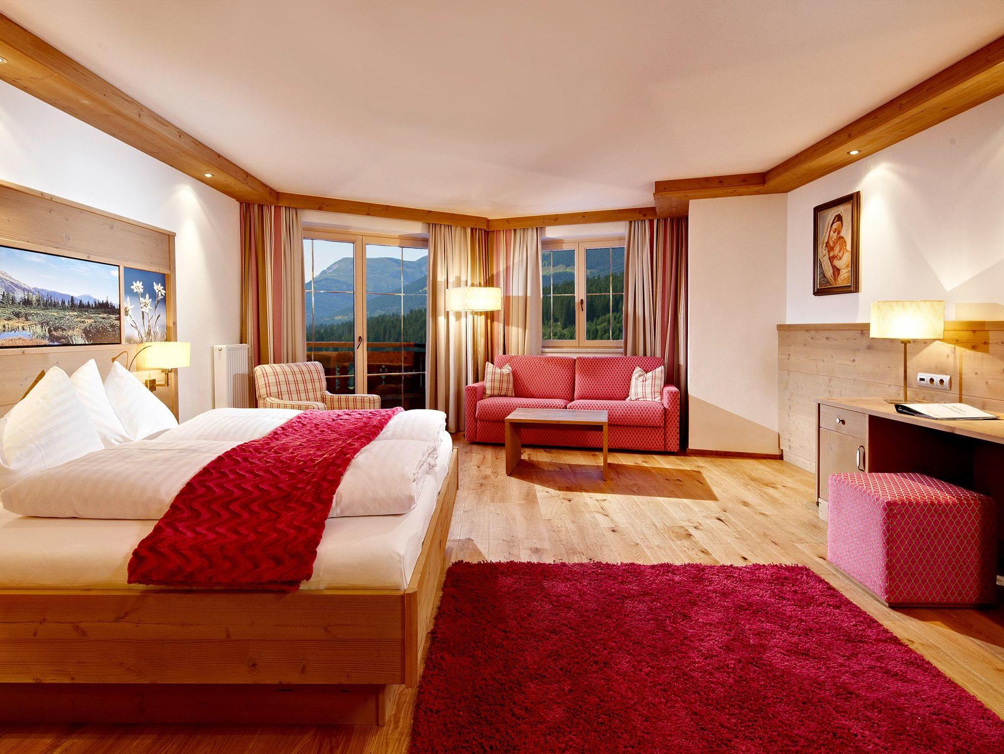21 wunderschöne Doppelzimmer, Junior- und Luxussuiten sowie 3 geräumige, bestens ausgestattete Ferienwohnungen stehen zur Wahl. Naturbelassene Holzböden und eine Einrichtung aus heimischen Hölzern verbreiten eine heimelige, gesunde Wohnatmosphäre. Dazu kommen die wohltuenden Zirben- und Allergikerzimmer. In den Luxussuiten, mit offenem Kamin und Badewanne, lässt es sich exklusiv entspannen.