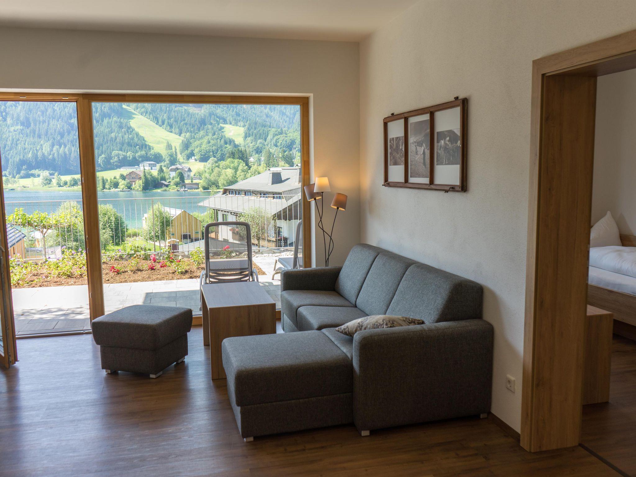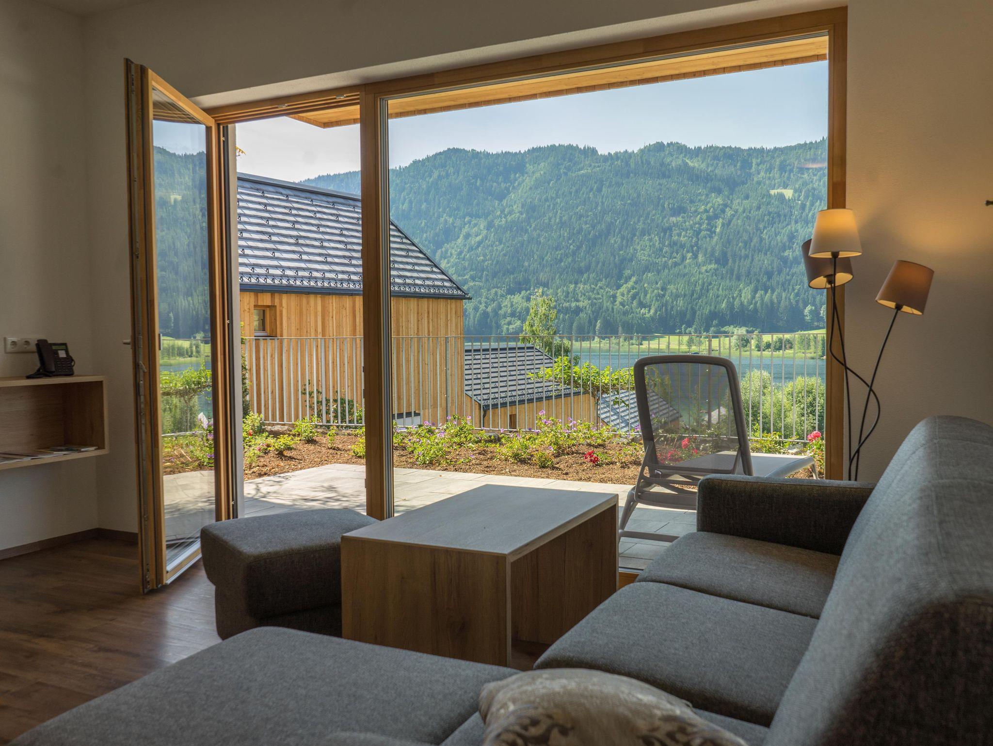 Eine Übernachtung im neuen SeeAppartement Naturnah steht für dezenten Luxus und höchsten Komfort. Vor allem das unbehandelte Holz lässt ein absolutes „Daheim“-Gefühl aufkommen. Vom mit viel Liebe zum Detail eingerichteten Wohn- und Essbereich geht es direkt auf die Sonnenterrasse und von dort sorgt der Panorama-Seeblick auf den Weissensee für unvergessliche Urlaubsmomente.