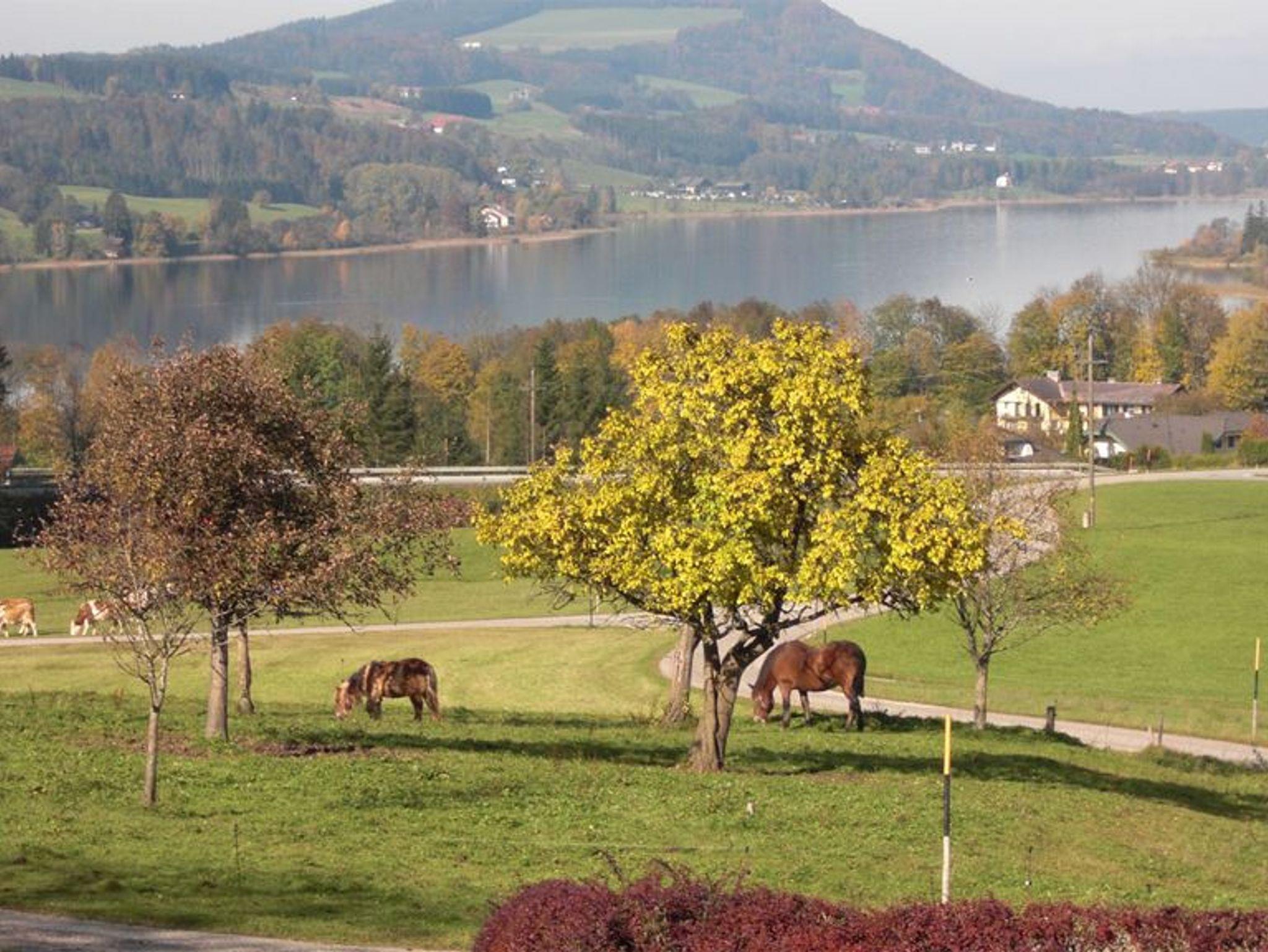 Genießen Sie den herrlichen Blick auf den Irrsee (Zellersee) - nur 500 m entfernt - und tanken Sie Kraft und Energie für einen erholsamen Urlaub im schönen MondSeeLand. 5 bis 10 Gehminuten sind es von unserer Pension zum Ort Zell am Moos bzw. zum Irrsee.