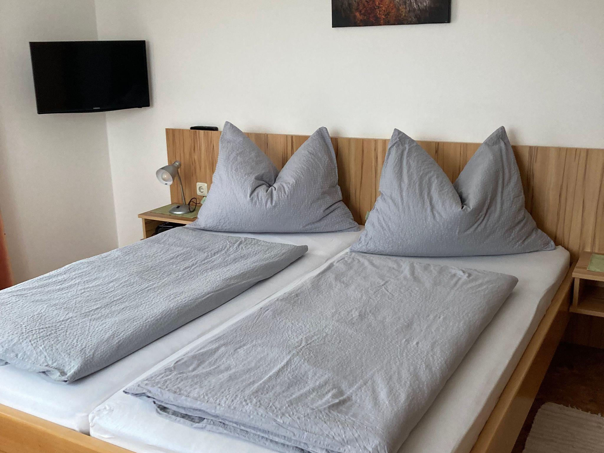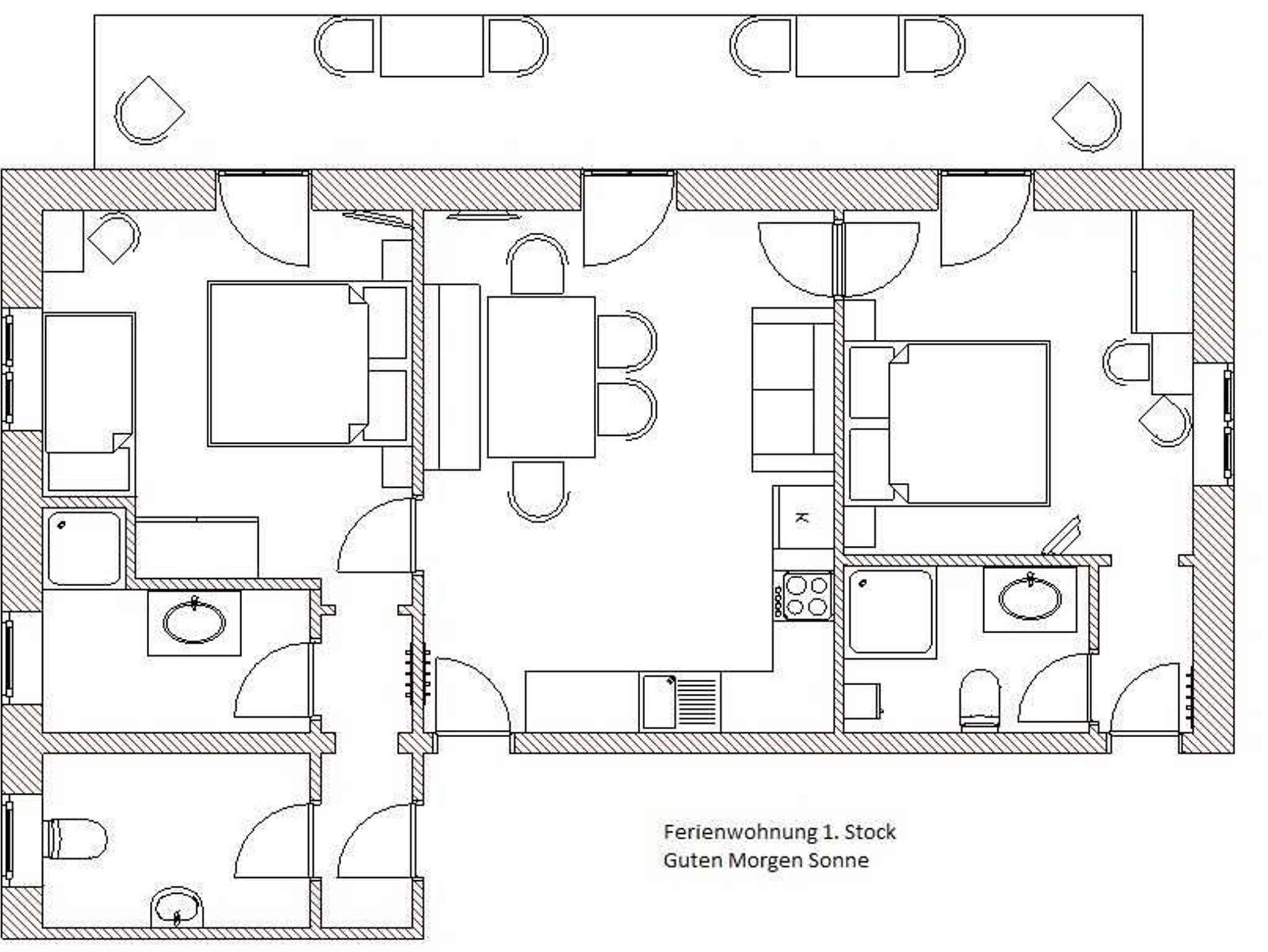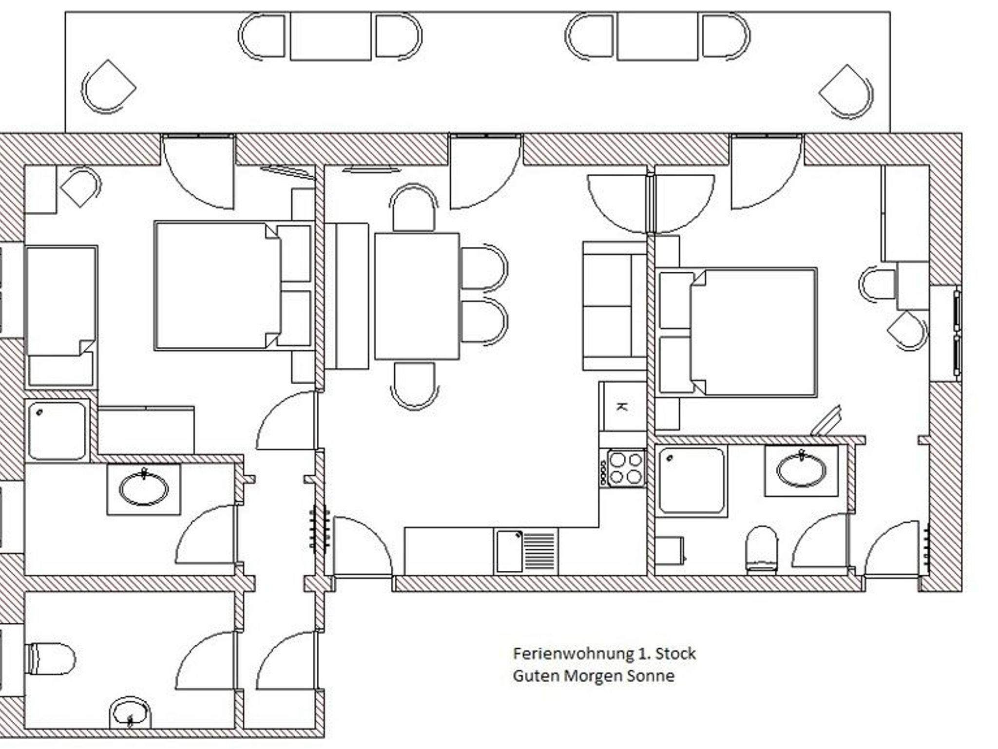 Die Wohnung besteht aus 2 getrennten Schlafzimmern, jedes mit DU/WC, Kabel-TV und Balkon sowie einer großen Wohnküche mit Couch, Kabel-TV und Balkon.