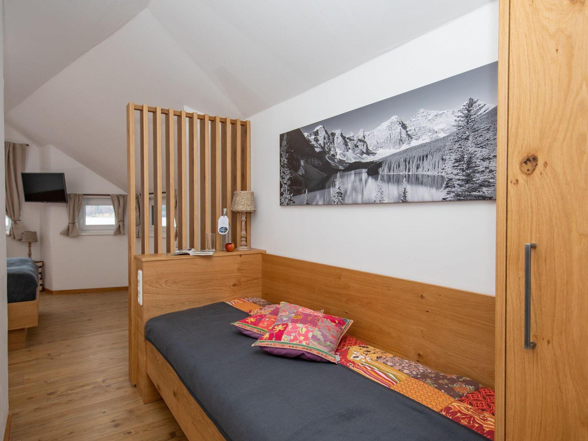 Diese großzügige 2-RaumWohneinheit bietet Platz für 2-3 Personen auf ca. 40m². Das Gartenzimmer befindet sich im Süd-Anbau vom Haupthaus und verfügt über eine Wohnküche mit vollwertiger Küchenzeile (mit Geschirrspüler, Mikrowelle, Herd mit 4er-Ceranfeld, Tassimo-Kaffeemaschine, Wasserkocher, Toaster, Geschirr, Reinigungsutensilien, etc…) Essbereich sowie Balkon Seeblick. Das Schlafzimmer ist ausgestattet mit einem Doppelbett, ein Einzelbett, und bietet noch Platz für ein extra Babybettchen. Flachbildfernseher via Kabel, WLAN, sowie ein Badezimmer mit Dusche, WC, Föhn, Hand-/Duschtücher, Handseife, WC-Papier