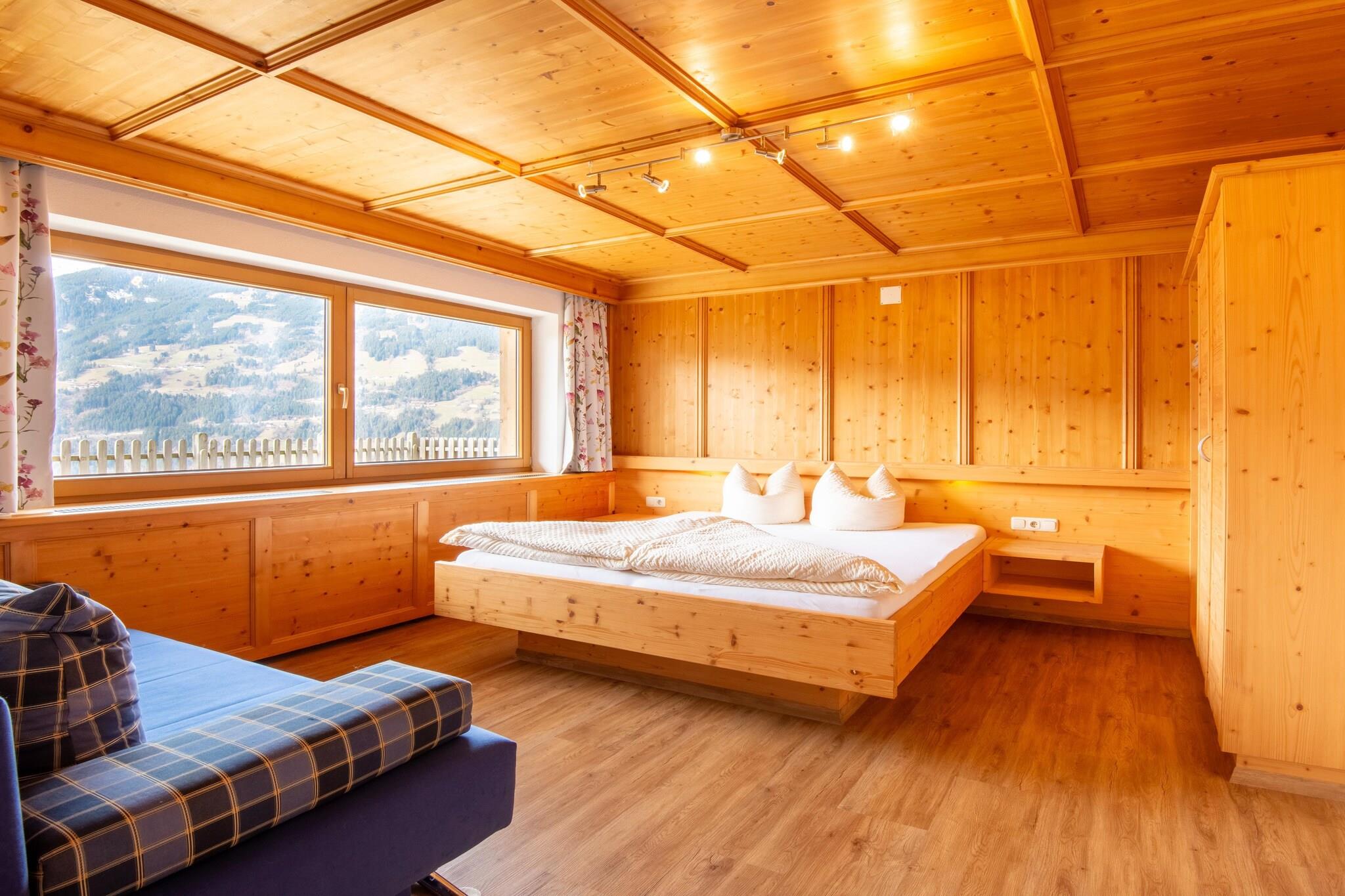 Chalet Schiestl is located on the Gerlosberg, in the centre of the Zillertal Arena. The village centre and the Zell am Ziller ski area are only a few minutes away by car. You live in the spacious, detached chalet with 150 square metres all to yourself. On 2 floors you have 3 separate bedrooms, 2 bathrooms and 1 living room, which are lovingly furnished with lots of wood. The chalet also has a balcony and a terrace. The advantages of holiday accommodation on a mountain, as opposed to in the valley, are greater living comfort due to the quiet location and the fantastic view of the surrounding mountains. The ski bus stops right outside the door and is perfect for a winter holiday! Special features: The chalet is ideal for 6 adults. You are kindly requested not to smoke in this chalet.