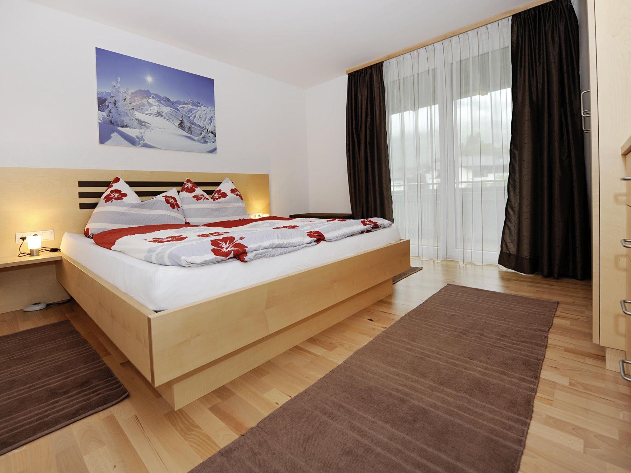 Das 55 m² große Appartement Hochjochblick besteht aus zwei Schlafzimmern, davon ein Zimmer mit Wasserbett, einer Wohnküche, Badezimmer mit Dusche/WC sowie Flur mit Garderobe. Das Appartement ist gemütlich eingerichtet und modern ausgestattet. Von beiden Schlafzimmern aus gelangen Sie auf den breiten, möblierten Balkon mit traumhafter Aussicht auf die Montafoner Bergwelt.
