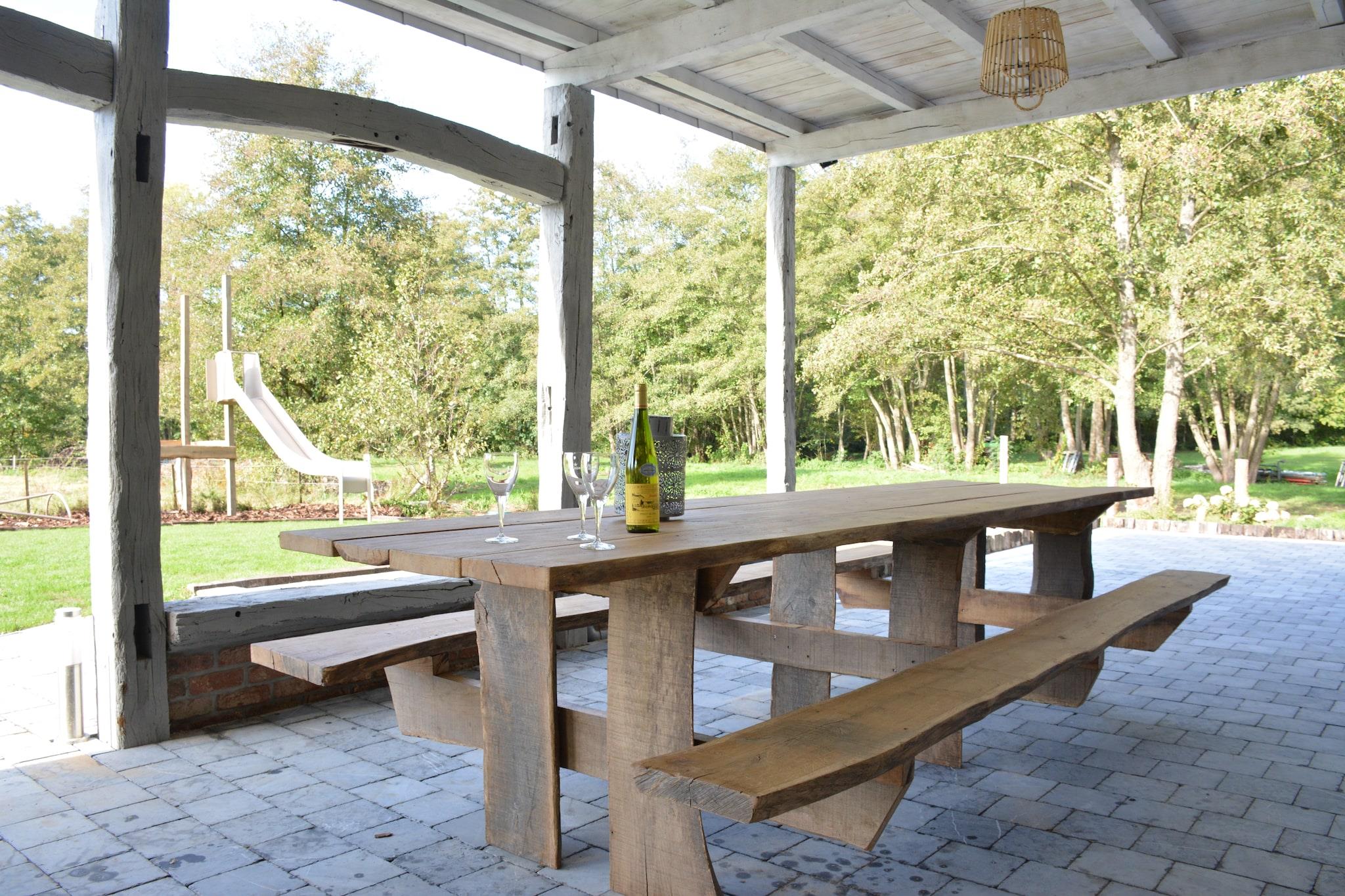 This spacious pet-friendly villa in Amonines, Érezée is perfect for large families or groups seeking comfort and entertainment in the Ardennes. Just 400 meters from the forest and 100 meters from the Aisne River, it offers easy access to nature and nearby attractions. Guests can explore the magical Parc Chlorophylle, discover underground wonders at the Grottes de Hotton, or enjoy outdoor thrills at Adventure Valley Durbuy. The charming town of Durbuy, known as the smallest city in the world, is just 15 km away. The villa features six bedrooms with en-suite bathrooms, including bunk beds and accessible options. A large kitchen with dual coffee machines and a 6-ring ceramic hob makes group cooking easy, while the living room includes a bar, darts, and billiards. Guests can unwind in the sauna or massage shower, and enjoy the recreation room with table football and air hockey. Outdoors, a roofed terrace, garden with barbecue, boules court, and play equipment offer fun for all ages. Nearby dining options include L'Affenage in Érezée for refined Belgian cuisine, La Carretta in Hotton for Italian favorites, and La Table de Manon in Durbuy for gourmet experiences.