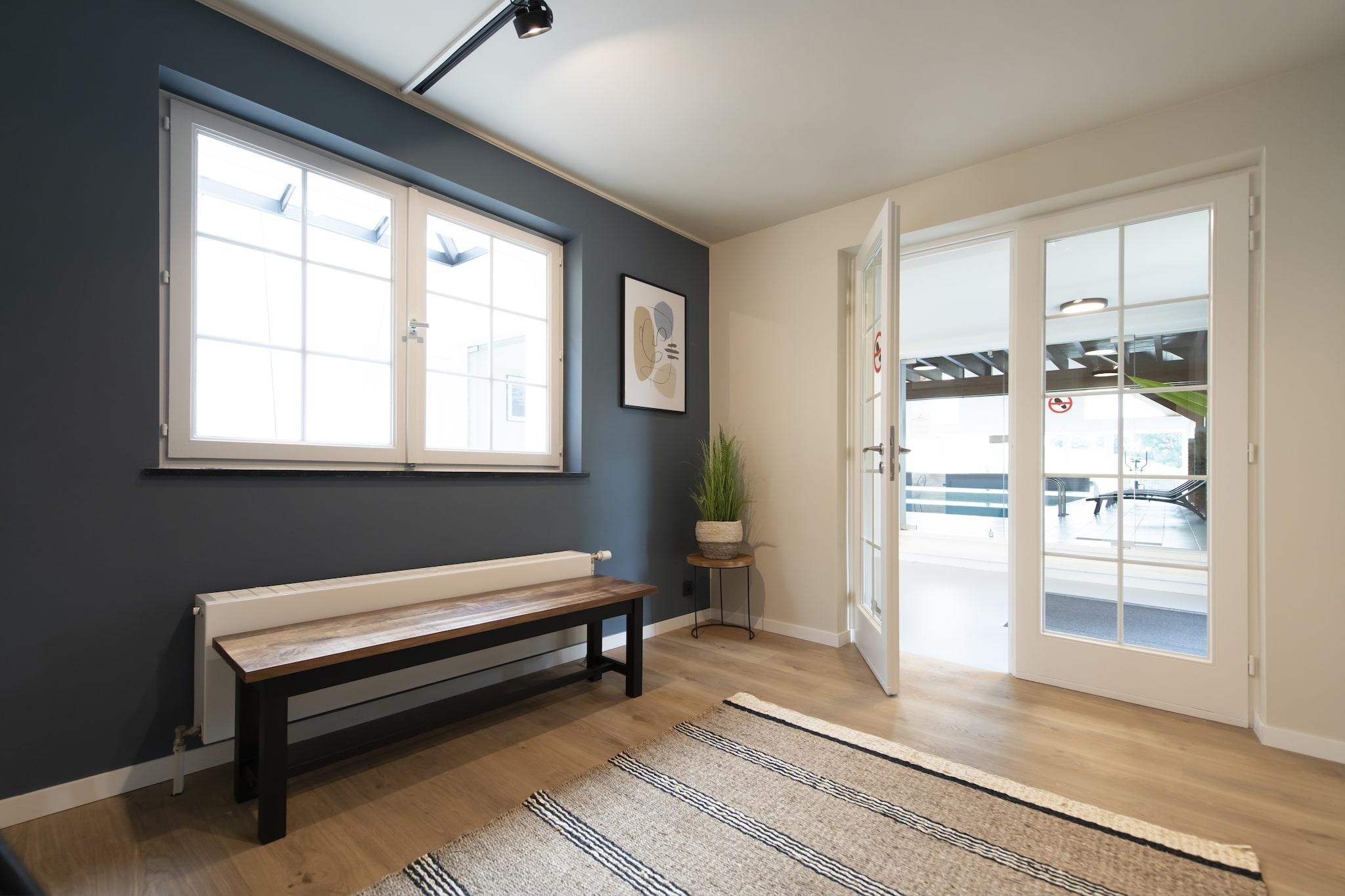 Ground floor: (hallway, Sitting room(TV(digital), fireplace, stove(Pellet), deckchairs), dining room(dining table, high chair, high chair), Kitchen(electric kettle, cooker, coffee machine, espresso machine, oven, microwave, dishwasher, fridge-freezer), toilet) On the 1st floor: (Sitting room(double sofa bed), bedroom(double bed), bedroom(2x single bed, washbasin), bedroom(double bed), Bedroom with bathroom(double bed, bath tub, shower, 2x washbasin), walk-through bedroom(double bed), walk-through bedroom(double bed, children's bed), bathroom(shower, shower, washbasin, washbasin, toilet), bathroom(shower, washbasin, toilet), toilet, toilet, Landing, washing room(tumble dryer, washing machine)) Guest house ground floor: (Kitchen(reachable from the outside)(dishwasher, fridge), bathroom(shower, washbasin), playroom(table football, billiards)) Pool house: (swimming pool(private, heated, roofed, 12 x 6 m., opened from Jan upto and including Dec)) bar, terrace, garden, garden furniture, sun loungers, BBQ, parking, parking, deckchairs, parasol