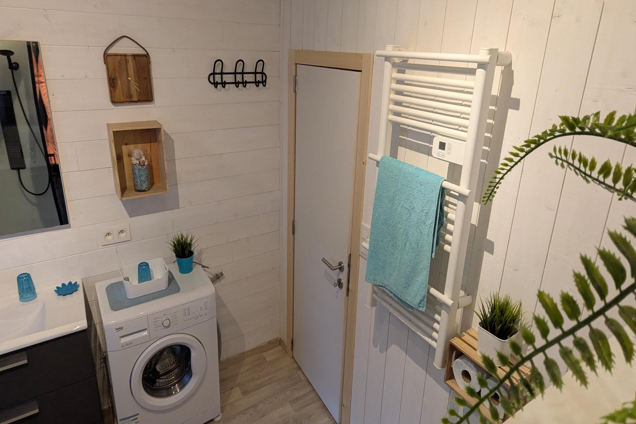 Ground floor: (Sitting room(TV(flatscreen, digital), stove(Pellet), seating area), dining room(dining table(4 persons)), open kitchen(electric kettle, toaster, cooker(4 ring stoves, ceramic), hood, coffee machine, oven(grill-oven), microwave, dishwasher, fridge-freezer), bedroom(double bed(twin duvet, twin fitted sheet, 140 x 200 cm), heating(electric)), bathroom(shower, washbasin, toilet), terrace) bedroom(double bed(twin duvet, twin fitted sheet, 140 x 200 cm), heating(electric)), Children's bedroom(heating(electric), children's bed), garden doors, garden(landscaped garden, partially fenced), bicycle storage, garden furniture, sun loungers, BBQ, parking, deckchairs, parasol, children's bed, ironing board, party games, Garden shed