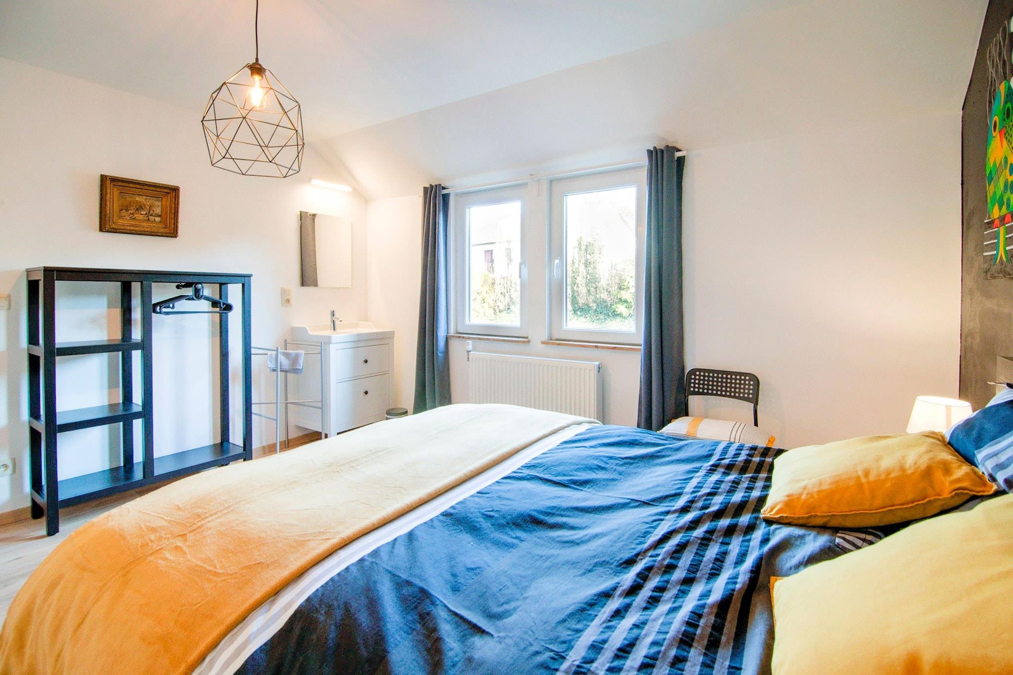 Welcome to Chant d'Oiseau, a cozy holiday home just 3 km from the heart of Durbuy. Ideal for families, this bedrooms retreat offers a peaceful setting with a lovely garden and a furnished terrace, perfect for enjoying meals or relaxing after a day of exploring. The famous tourist train that winds through Durbuy's historic centre is just a short trip away, and the nearby Ourthe River (2 km) offers opportunities for peaceful strolls or outdoor fun. A supermarket is also conveniently located 3 km from the home for all your essentials. Inside, the home features a fully equipped kitchen, inviting bedrooms, and a warm ambiance. Bicycles are available for exploring the scenic surroundings, and an electric car charging station is accessible upon request for an added fee. Please note: guests are expected to leave the house as clean as they found it.