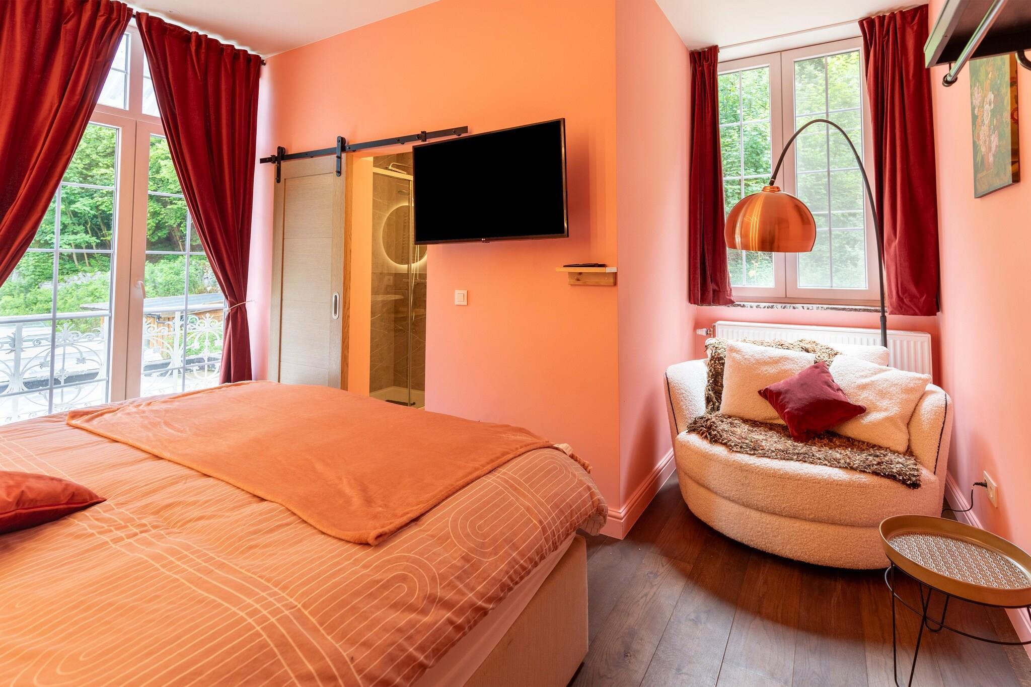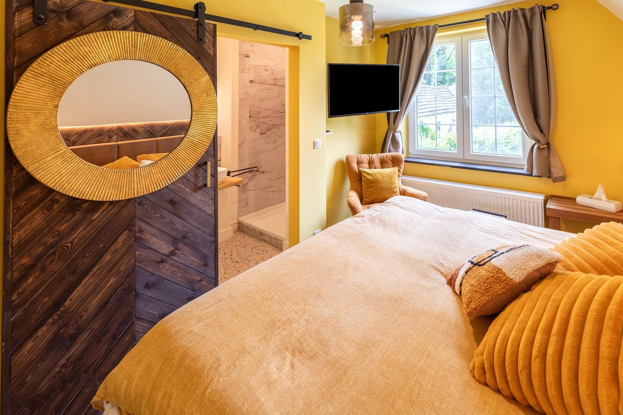 Welcome to Manoir de Goyet, a stunning country estate nestled between forest and valley in Faulx-les-Tombes, near Namur in the picturesque Samson Valley. This enchanting 6-bedroom manoir is the perfect escape for families and groups seeking comfort, charm, and luxury in the heart of nature. Each bedroom offers a private bathroom, TV, and Wi-Fi, ensuring complete comfort and privacy. Unwind in the private outdoor swimming pool or soak in the connected whirlpool bath. Indoors, enjoy cozy moments by the bar, a game of billiards, darts, or PlayStation, or simply relax with a book in the serene living room. Outdoors, gather around the authentic Finnish barbecue hut (Kota) for unforgettable meals. The vast field is ideal for football or basketball, and 4 e-mountain bikes are available for adventurous rides. Children and animal lovers will adore the friendly goats, Sandy and Wendy. The fully equipped kitchen with a cooking island, pantry, extra appliances, and a cold cellar offers everything needed for group meals and celebrations. The large, sun-drenched veranda with a long dining table offers breathtaking views of the valley. Pet-friendly, peaceful, and full of possibilities, Manoir de Goyet is your ultimate countryside retreat in the Belgian Ardennes. Parties and drinking parties of any kind are not permitted in the villa. If guests do not comply with these rules, the owner will charge them for the costs related to the same.
