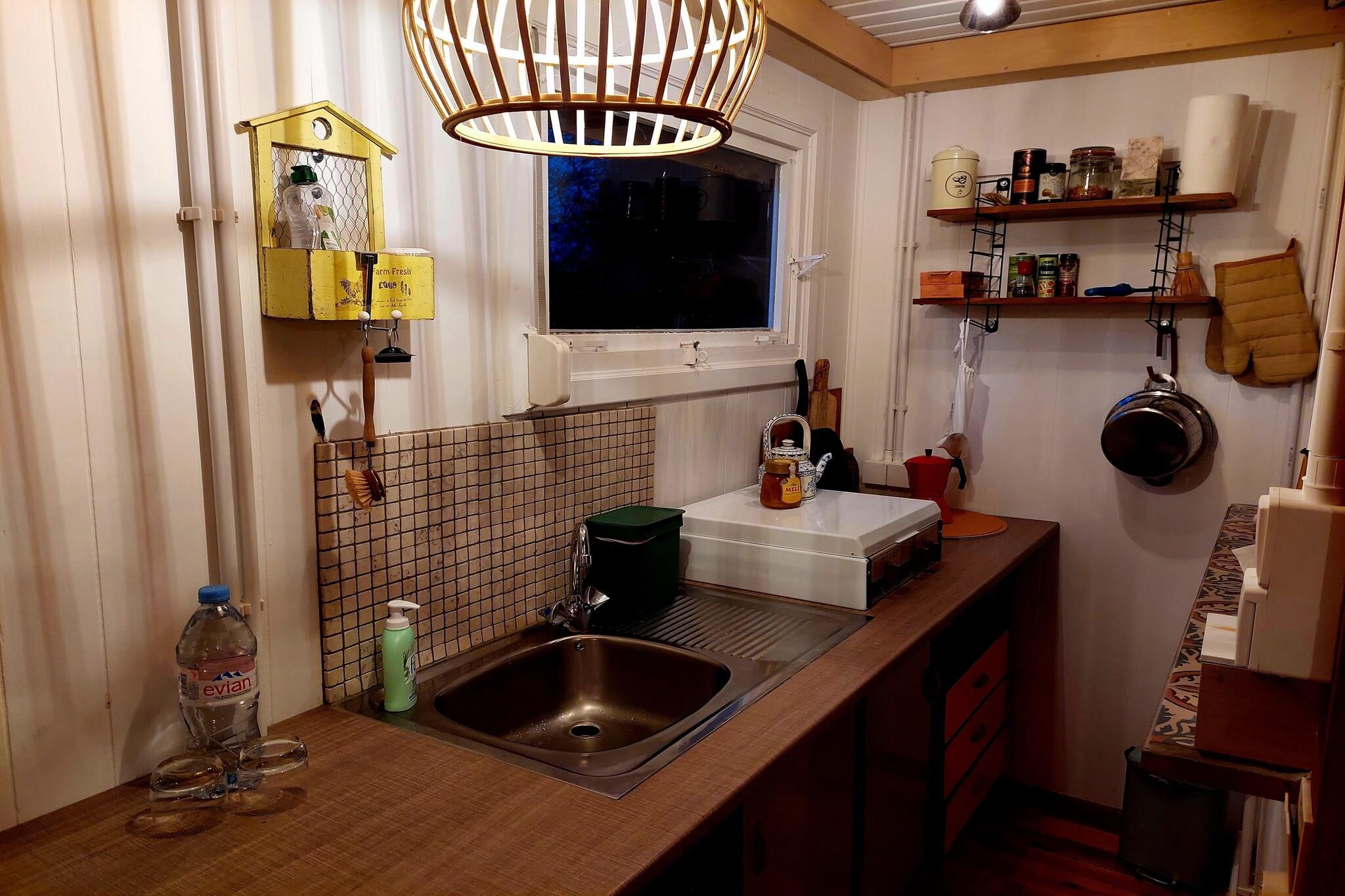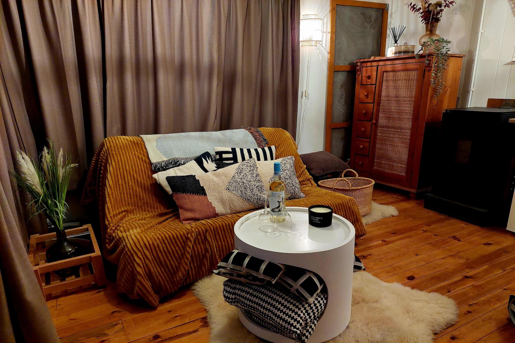 Ground floor: (Kitchenette(espresso machine, microwave, fridge), Living/diningroom(dining table, stove, seating area), bedroom(electric heating)(double bed(130 x 190 cm)), bathroom(electric heating)(shower, washbasin, toilet)) shower(outside), terrace, garden, garden furniture, parking, parasol