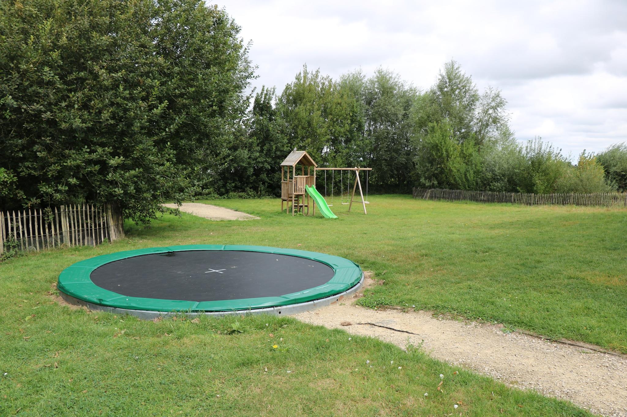 Ground floor: (Living room(TV, fireplace, seating area, DVD player), Living room(TV, fireplace, seating area, DVD player), dining room(dining table(24 persons)), open kitchen(hob, electric kettle, hood, coffee machine, oven, microwave, dishwasher, fridge-freezer, dishes and cutlery, Cooking basics, Wine glasses), open kitchen(hob, electric kettle, hood, coffee machine, oven, microwave, dishwasher, fridge-freezer, dishes and cutlery, Cooking basics, Wine glasses), bedroom(double bed), bathroom(shower, washbasin, toilet), toilet, toilet, storage(washing machine), storage(washing machine)) On the 1st floor: (bedroom(double bed, bunk bed, bunk bed), bedroom(double bed, bunk bed, bunk bed), bedroom(double bed, bunk bed), bedroom(double bed, bunk bed), bedroom(double bed), bathroom(shower, washbasin), bathroom(shower, washbasin), bathroom(shower, washbasin), bathroom(shower, washbasin), bathroom(shower, washbasin), toilet, toilet) Parking, terrace, terrace, garden(private), garden furniture, BBQ, trampoline, boules court, play equipment, slide, table tennis table, Swing set, heating