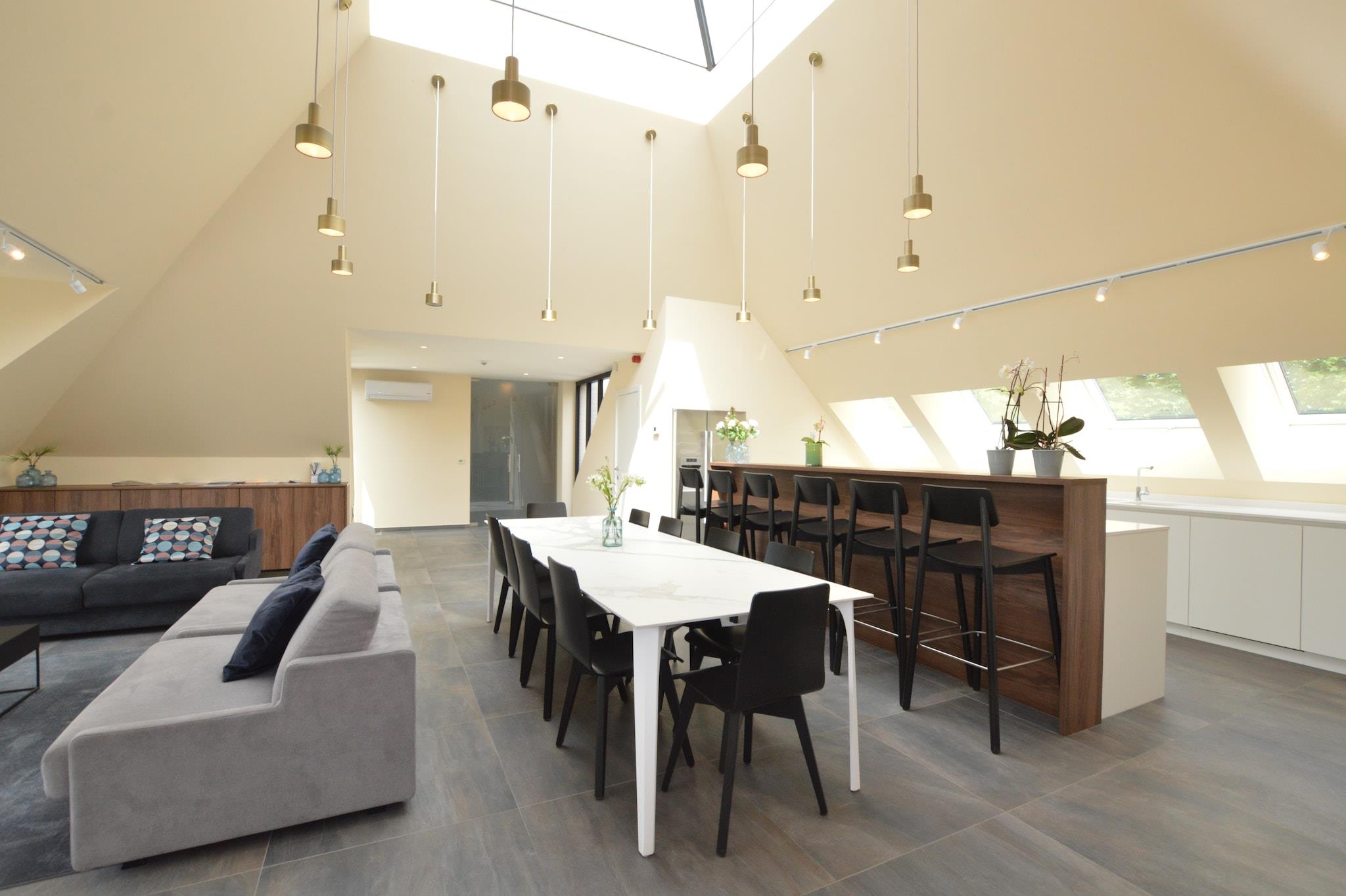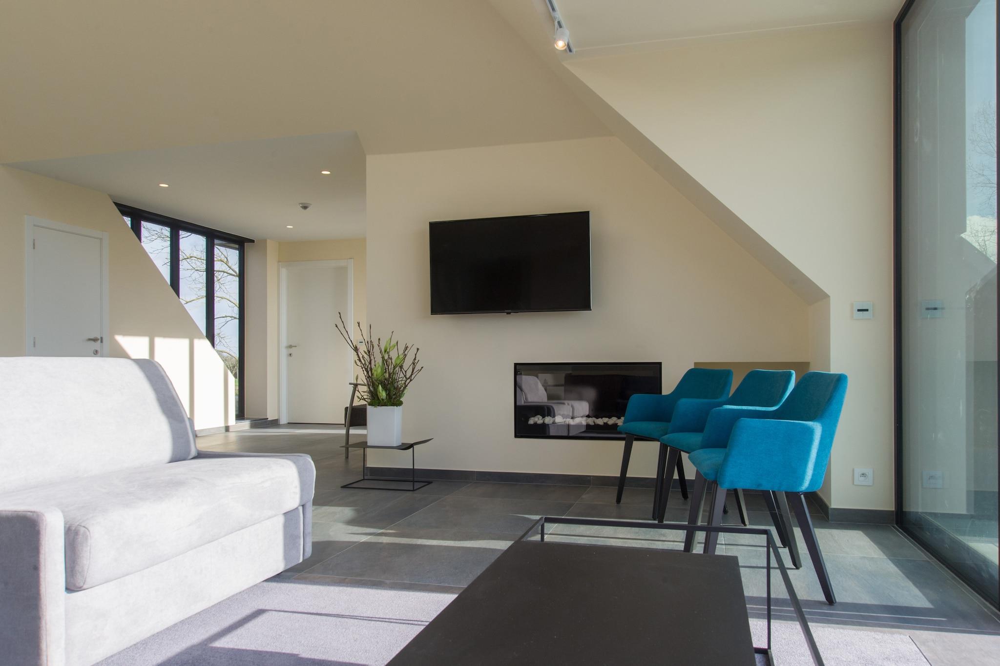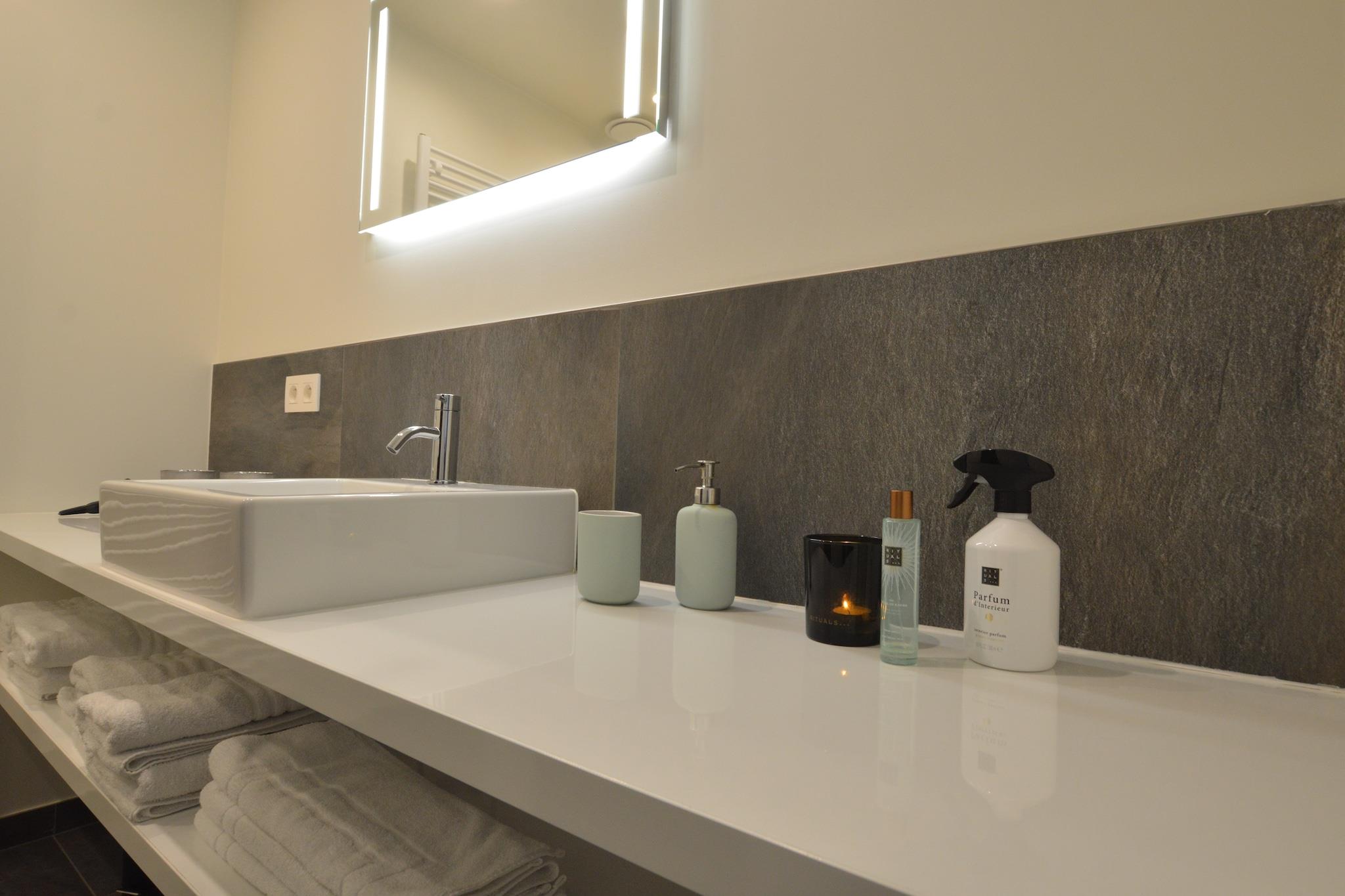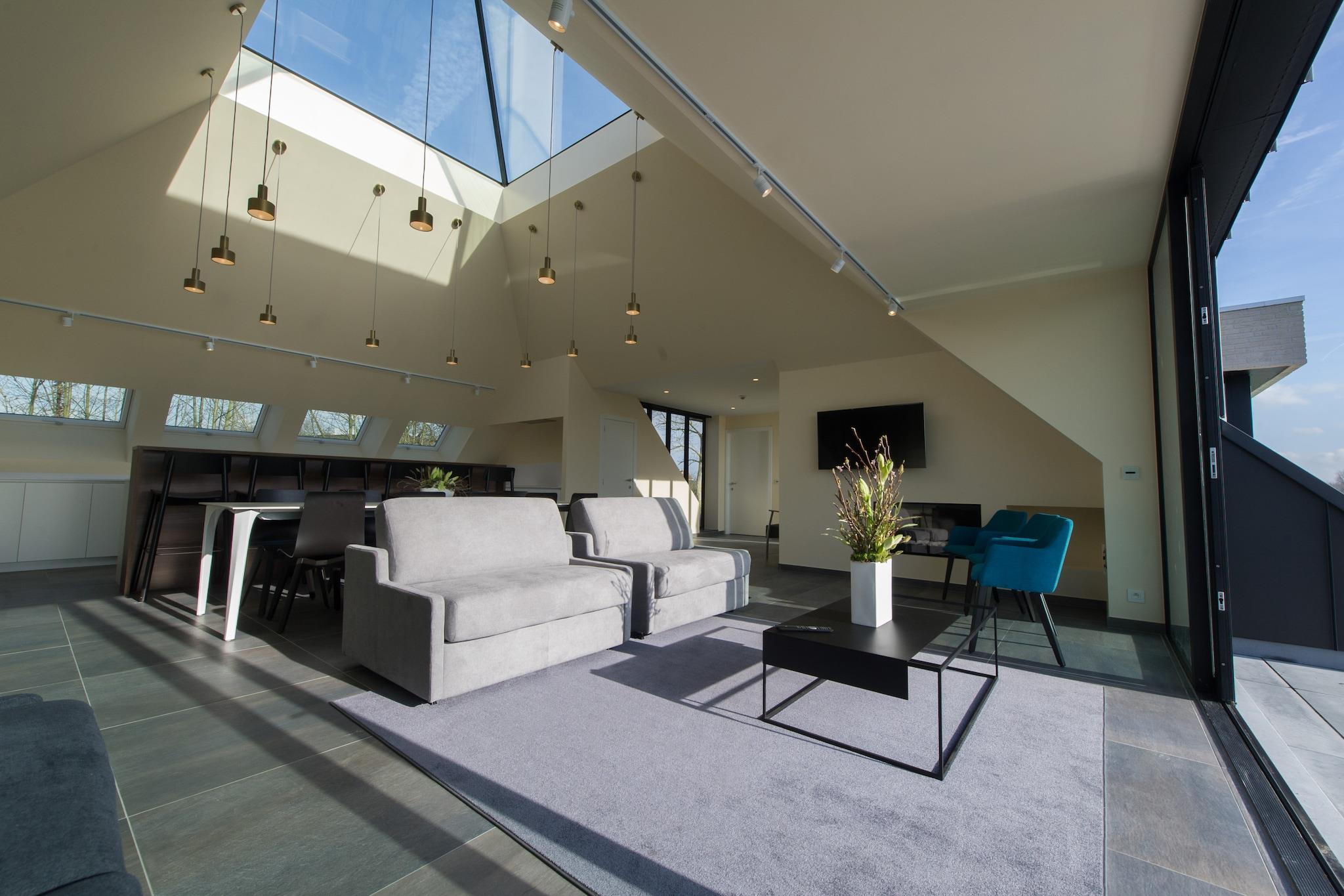 Located amidst open fields at the edge of East Flanders, this luxurious and modern villa near Aalst offers a stylish and peaceful retreat for families or groups of up to 9 guests. With 3 spacious bedrooms, the villa combines comfort, elegance, and functionality. Relax by the gas fireplace in the cozy living room or enjoy meals in the open-plan kitchen and dining area. The beautifully furnished garden and terrace by the pond provide the perfect setting for soaking up the sun or enjoying a glass of wine in the fresh countryside air. On warmer days, the villa's air-conditioning ensures a comfortable indoor climate, while private parking makes arrival and departure easy. Surrounded by nature, this villa is the perfect starting point for walking and cycling tours. Centrally located between Ghent, Brussels, and Antwerp, it allows easy day trips to explore Flemish culture and history. Don't miss the nearby sights of Aalst, including the stunning St. Martinus Church, or a visit to Dendermonde's famous belfry. Whether you're looking for relaxation or adventure, this modern villa offers a memorable stay in the heart of Belgium.