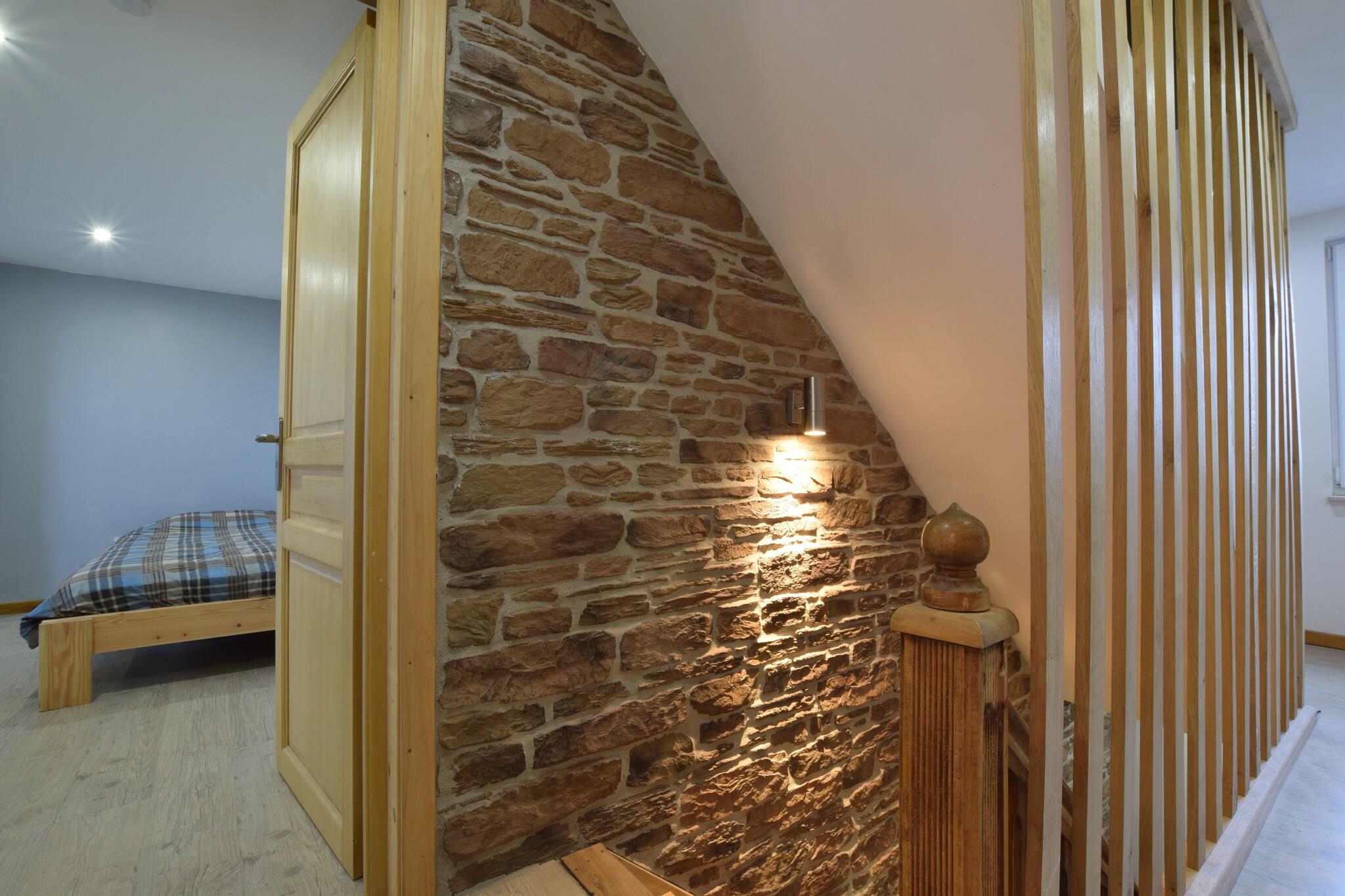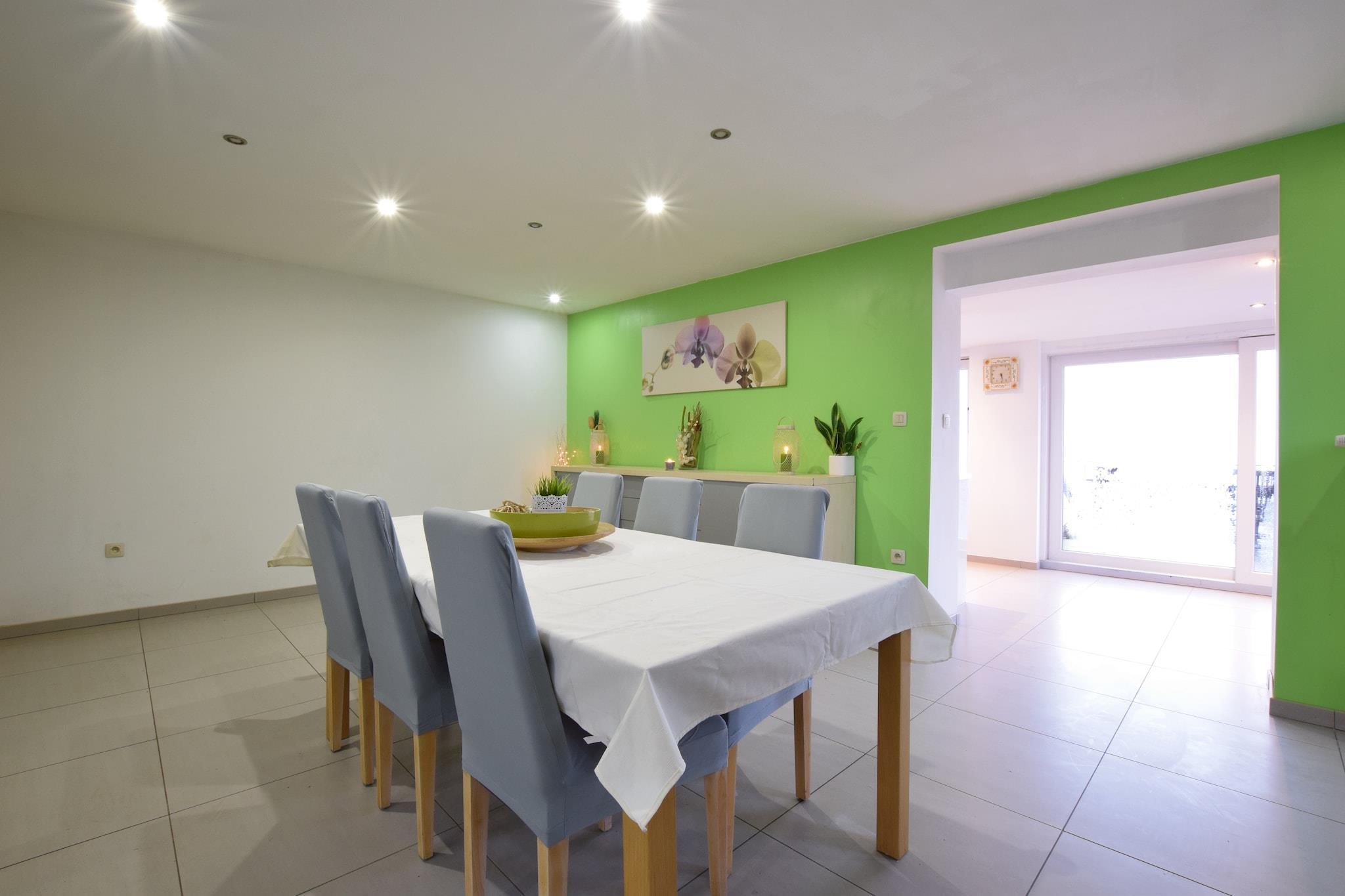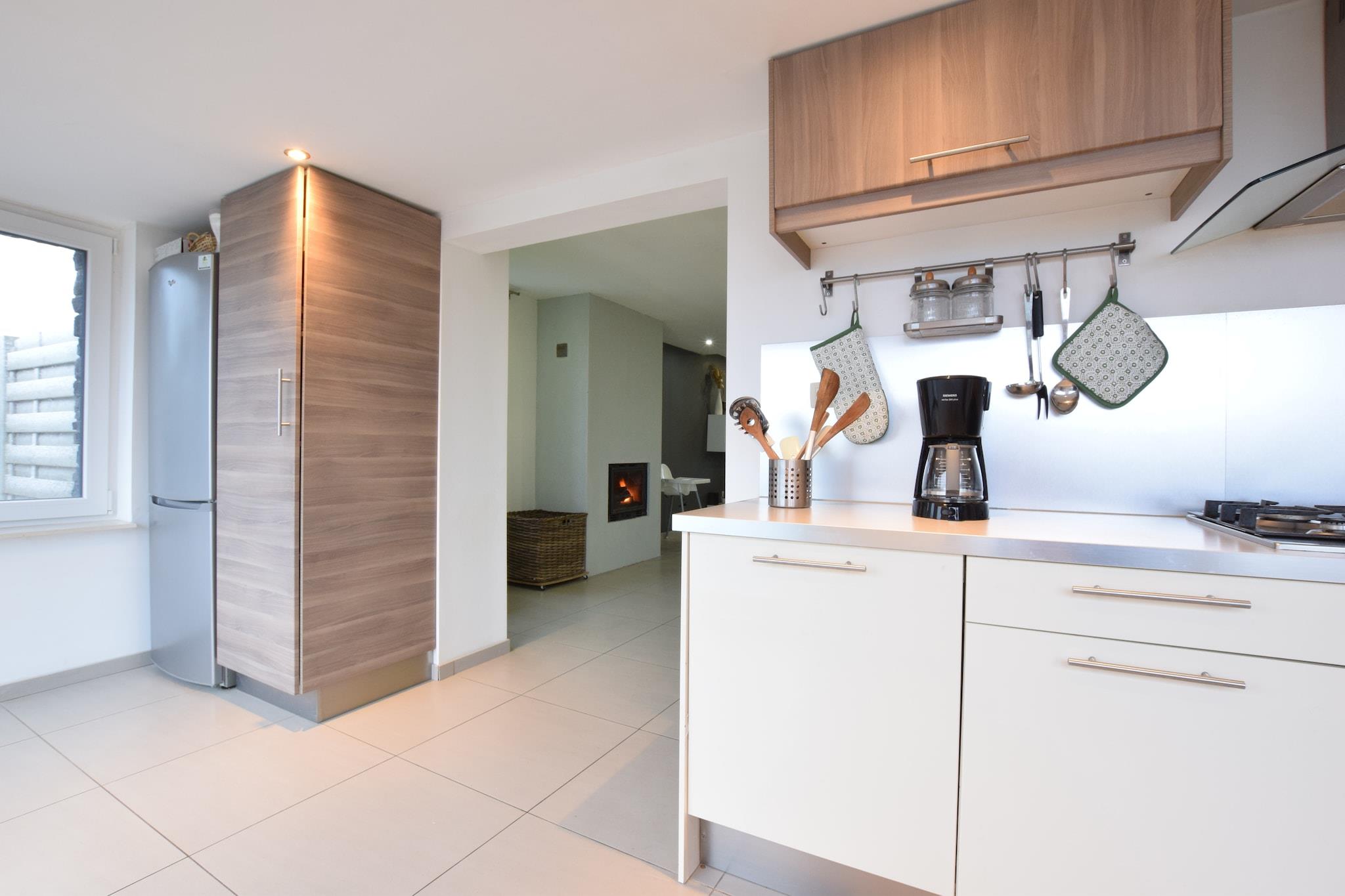 Looking for a holiday home to relax with friends or family? This beautiful accommodation is undeniably the ideal place! The terraced house, renovated in a contemporary style, has a beautiful location and a lovely garden for the children to steal. The holiday home is located in a hilly and wooded region, in a small and quiet village about 10 km from Durbuy; the smallest town in the world. You can enjoy walking, cycling and mountain biking along the many well-marked routes through the characteristic nature. Five Nations Golf Club, one of the most beautiful golf courses in the world, is within walking distance of the residence. Don't miss the annual Cheese Route in Méan! When the sun shines you can enjoy a good book on the terrace. Admire the view there and light the barbecue for a pleasant summer evening. You spend cold autumn and winter days by the warm fire and the well-equipped offers you the opportunity to prepare your favorite dishes.