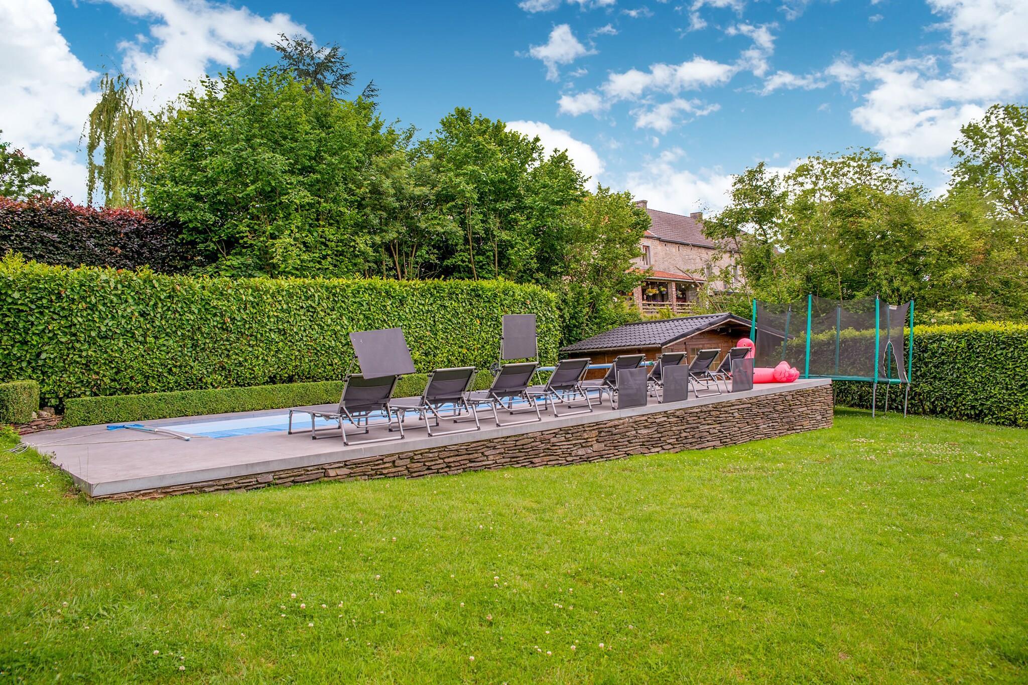 This cozy holiday home in Hamoir-Filot offers a peaceful retreat for families, just 2.7 km from the town center and surrounded by the lush landscapes of the Ardennes. With easy access to the train station and Liège Airport, it’s a great base for exploring nearby attractions like the Grotte de Comblain, Lassus Castle, and the thrilling Adventure Valley Durbuy. Nature lovers will enjoy forest walks and kayaking on the Ourthe River. The property features a warm living room, dining area, and an open kitchen equipped with both filter and pad coffee machines, oven, microwave, a second fridge and dishwasher. With four bedrooms and two bathrooms—one with a bathtub—it comfortably accommodates families. A washing room with freezer and washing machine adds convenience. Outdoors, enjoy a private heated pool (open June–September), terrace, garden, barbecue, trampoline, swing set, and play equipment. A baby cot, highchair, and playpen make it child friendly. It is strictly forbidden to use the gîte's electrical installation for charging an electric vehicle, nor to connect a mobile home, caravan or van. The area offers excellent dining options. Just 2.6 km away, Le Clapotis serves Belgian cuisine by the river. For Italian flavors, try L'entre mets toi", and for a relaxed café vibe, La Cafet’Arya in nearby Durbuy is a favorite. Whether you're hiking, sightseeing, or enjoying family time by the pool, this home is a perfect Ardennes getaway. Note: Waste sorting is mandatory, and penalties apply for non-compliance. A detailed sorting guide is displayed above the bins for your reference.
