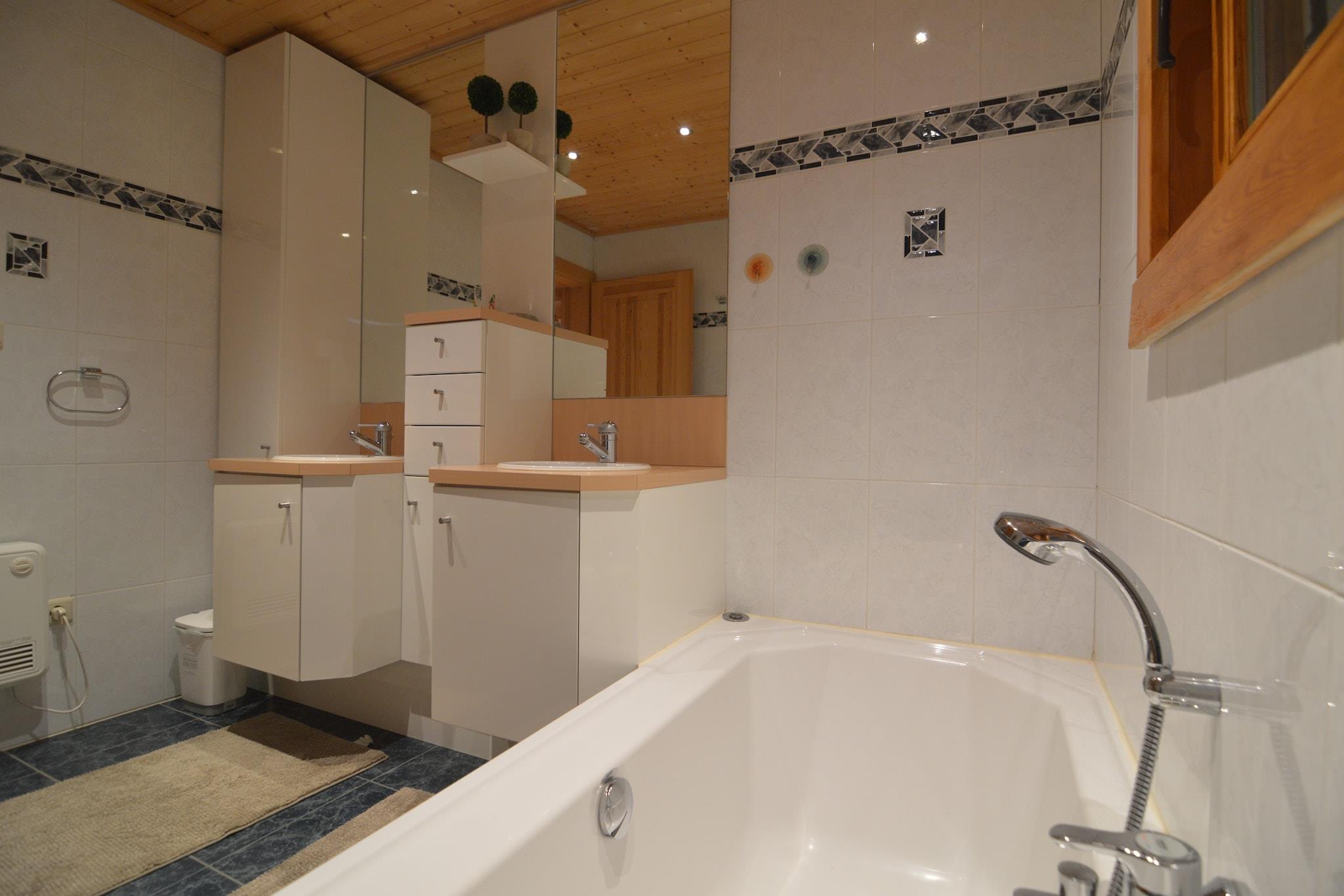Tucked into the peaceful greenery of Stavelot, this 2-bedroom chalet offers a warm and inviting escape for up to 5 guests. Ideal for a small family or couple’s retreat, the home features a private terrace, pellet stove, and electric heating, perfect for cozy evenings after a day of exploring the Ardennes. The chalet includes a fully equipped kitchen, spacious living room with flat-screen TV, and a bathroom with a bathtub and baby bath. Outside, enjoy a partially fenced garden with barbecue, garden furniture, and bicycle storage. A children’s bed and high chair are available for a small fee, and parking with a carport is provided for your convenience. Located just 500 m from the forest, 3 km from a supermarket, and 500 m from restaurants, the chalet is a great base for hiking, cycling, or visiting nearby attractions like Spa-Francorchamps and Plopsa Coo. Please note: the property is suitable for families only, and charging electric vehicles via the domestic network is not permitted. Bed linen On Site: Bring your own