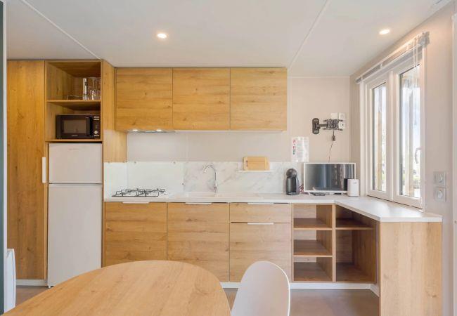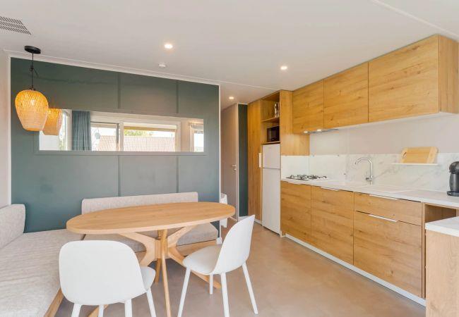 The house accommodates up to six people and features a modern interior, three bedrooms, a fully equipped kitchen, and a cosy living space. Thanks to the spacious private waterside terrace, you can enjoy long summer evenings, breakfast in the sun, and pure relaxation.