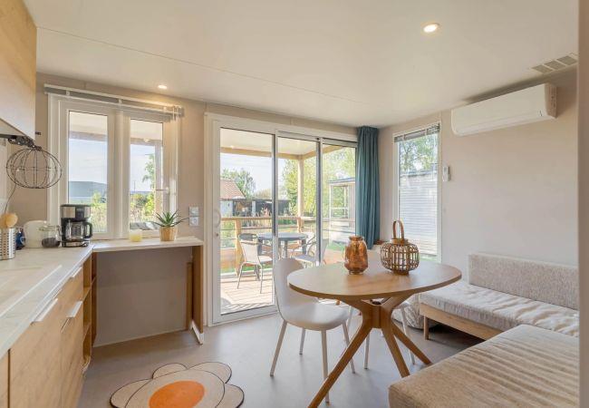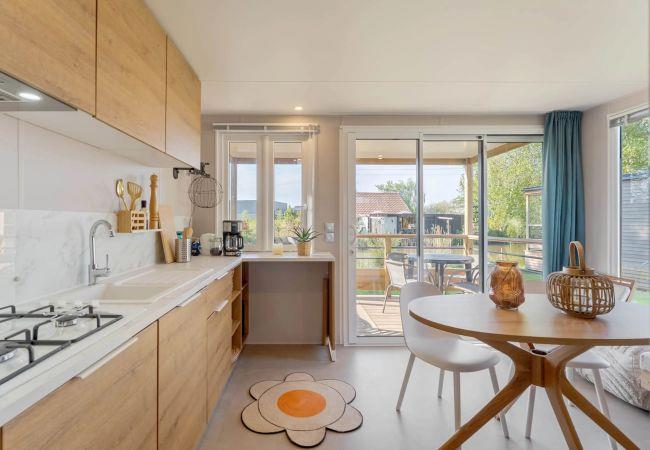 The Premium holiday homes on the water at Papillon Kinrooi offer a luxurious and relaxing stay experience in the heart of Belgian Limburg. Located directly on the pond and surrounded by greenery, these accommodations are ideal for guests who want to combine comfort with a beautiful view and a relaxed atmosphere.