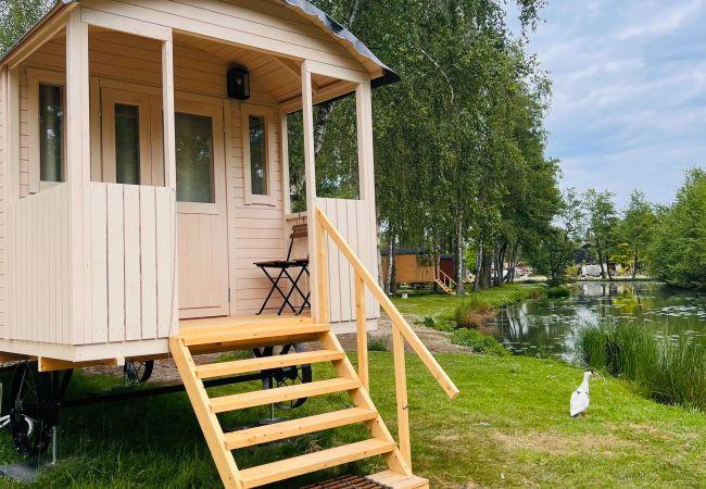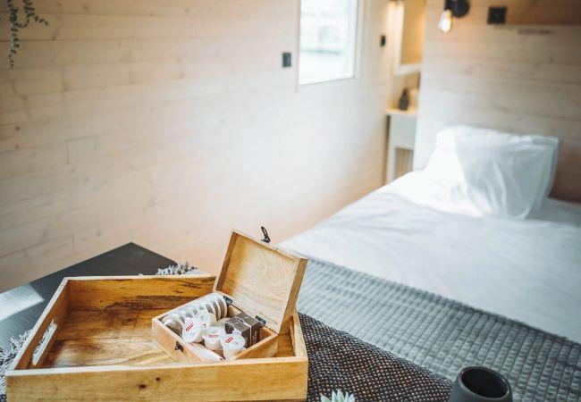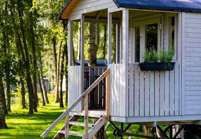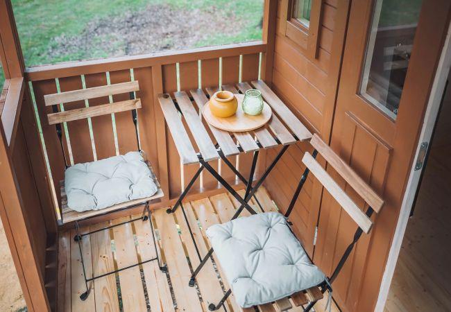 The pipowagen has a cosy sleeping area, a compact seating area and its own terrace with a view of the greenery. Here you can enjoy breakfast in the morning sun, a good book in the afternoon or a relaxed evening under the stars.