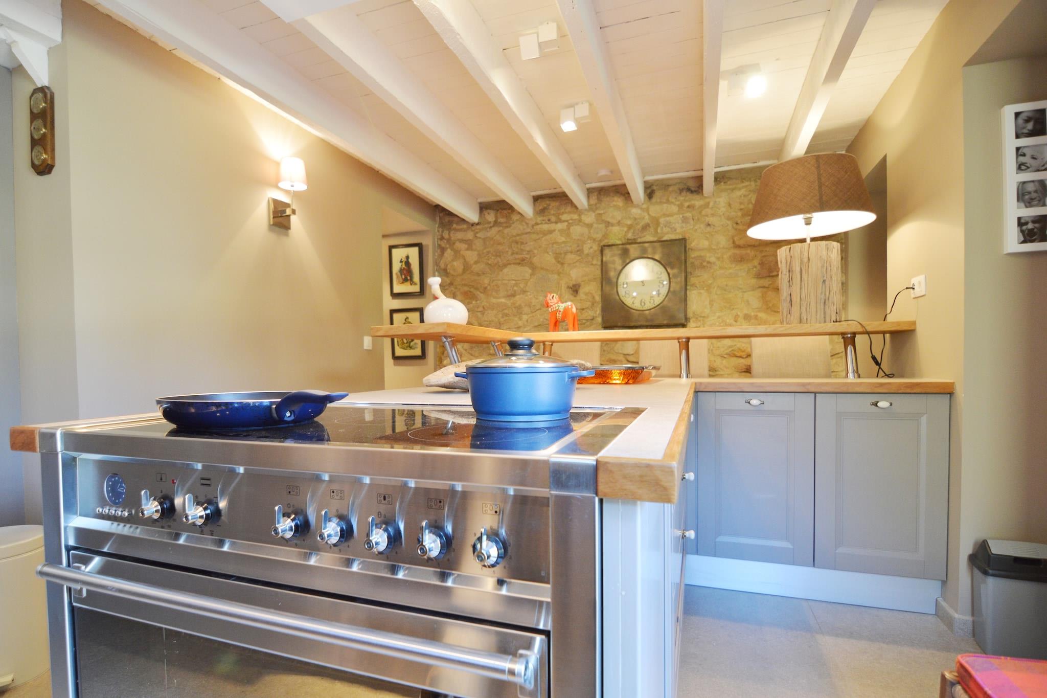 Een minpuntje voor ons was de keuken. Een grote keuken met veel materiaal en migelijkheden. Maar alles is chaotisch in de kasten gepropt. Jammer genoeg ontbreken er essentiële dingen. We waren met 9 personen aanwezig en er zijn te weinig soepborden, te weinig glazen, 1 wijnglas...
