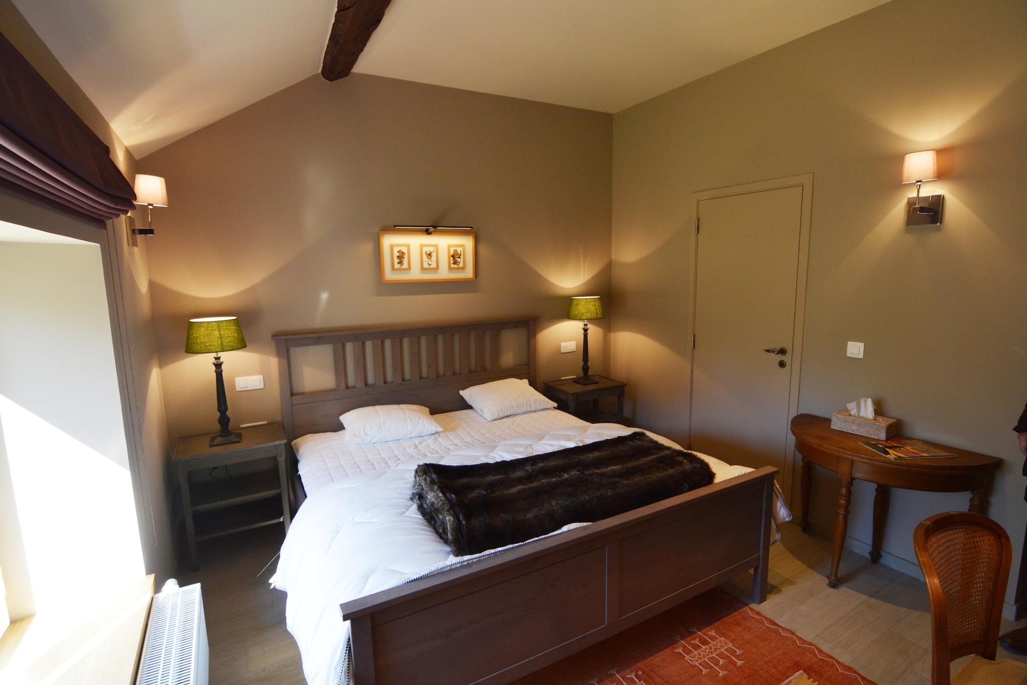 An optional utilities and service fee of EUR 100,00 will be charged before your arrival. Details are given below. This 5-bedroom holiday home is a private hunting lodge in Viroinval, in the beautiful Belgian Ardennes region. Featuring a private furnished garden with a barbecue, it is ideal for a group of 9, large families, or two smaller families. The forests offer a perfect spot for a picnic. The biodiversity is amazing, and you can even arrange for a barbecue in the woods. During your stay, visit nearby places like Couvin, the Cave of Neptune, and Chimay with its abbey and beer. Enjoy the morning sun and evening barbecue on the furnished terrace. When it is cold outside, you can relax in front of the stove in the living room. The dining room and modern kitchen have a fireplace for a cozy atmosphere. All bedrooms have attached bathrooms and quality bedding. One pet is welcome. Parking is also arranged. Check-in is between 4 - 6 PM and check-out is between 9 - 10 AM. Optional Utilities & Service Package An optional utilities and service package of EUR 100,00 can be selected prior to your arrival. You will receive a separate communication with the payment link should you wish to include it. This package ensures a seamless stay and covers services such as final cleaning, utility consumption, service support, and protection against minor damages or incidental costs. Guests who prefer may manage these services independently, provided the property is returned in good order at check-out. Note: Smoking is not allowed inside the house.