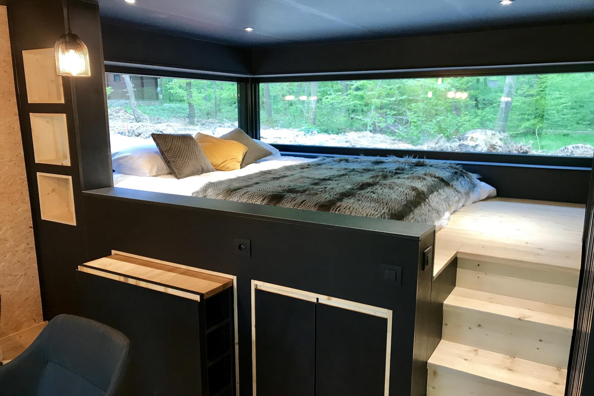Sustainable Forest Escape with Modern Comfort Tucked away in a serene, private area of Village de Vacances Oignies, this eco-lodge blends luxury with nature. Designed like a cross between a chic treehouse and a tiny home, the lodge features natural materials like straw insulation and a heat pump for year-round comfort. Inside, smart space-saving features—like a retractable dining table and cozy lounge box that transforms into a king-size bed—make it perfect for couples or small families. Pet-Friendly Paradise in the Trees Bring your four-legged friend along—pets are welcome! Surrounded by peaceful forest trails, it’s the perfect playground for dogs to explore off-leash. You can enjoy long hikes, lakeside walks, or simply unwind on the partially covered terrace while your pet snoozes nearby. For a fun outing, nearby villages offer pet-friendly cafés and picnic spots where both you and your pet can feel right at home. Peaceful Seclusion with Local Flavors Nearby Though nestled deep in nature, the lodge is just a short drive from charming towns like Couvin and Nismes, where you’ll find cozy taverns, bakeries, and Belgian cuisine. After a day of adventure, come home to enjoy a meal prepared in your fully equipped kitchen, or relax with a movie and a glass of wine under the stars. Whether it's peace, play, or proximity you're after—this lodge offers it all in eco-luxury.